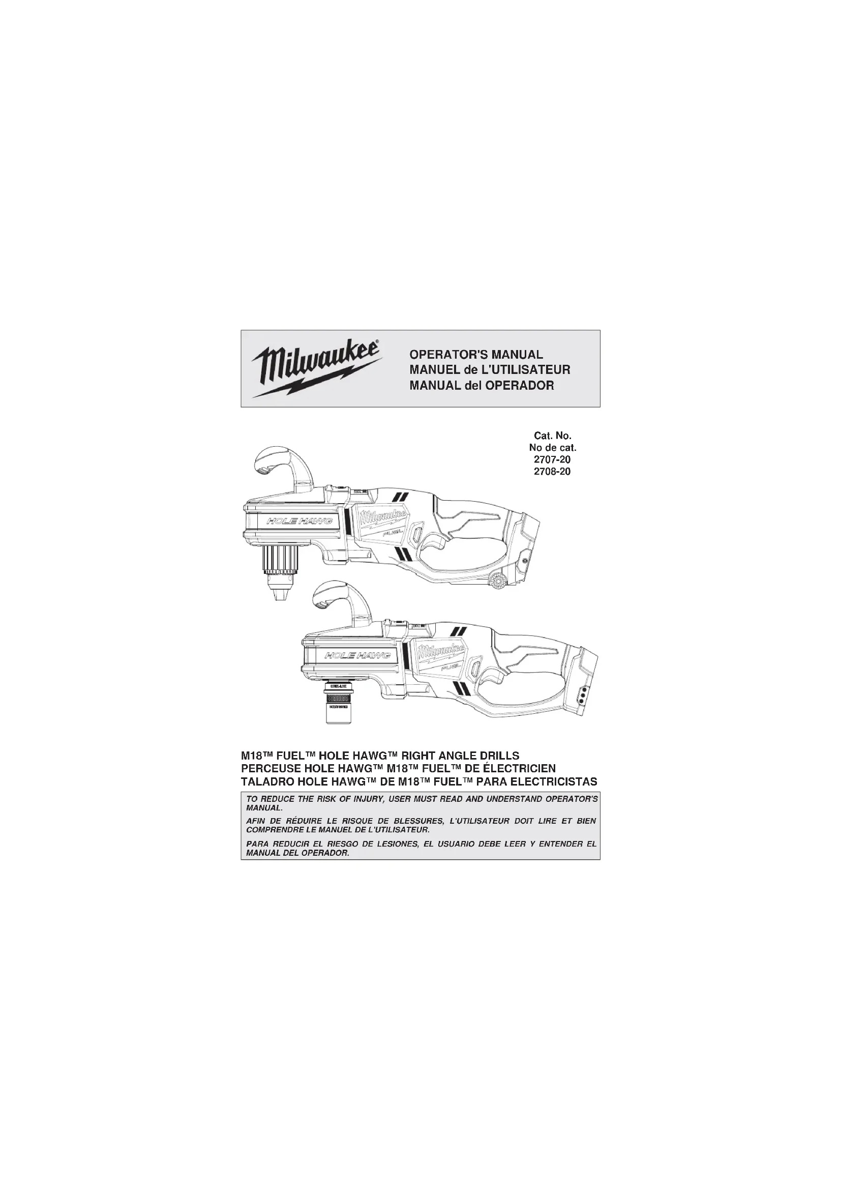 Retrouvez gratuitement la notice de l'appareil M18 Fuel 2708-22 MILWAUKEE au format PDF.