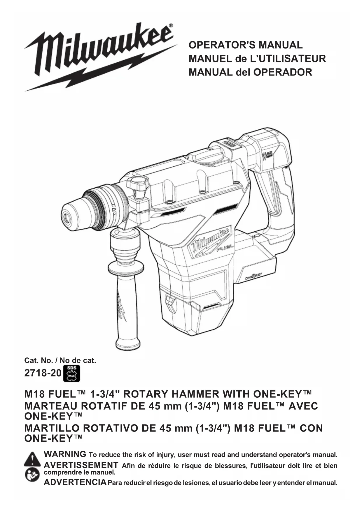 Téléchargez la notice de votre Marteau au format PDF gratuitement ! Retrouvez votre notice M18 Fuel ONE KEY 2718-21 - MILWAUKEE et reprennez votre appareil électronique en main. Sur cette page sont publiés tous les documents nécessaires à l'utilisation de votre appareil M18 Fuel ONE KEY 2718-21 de la marque MILWAUKEE.
