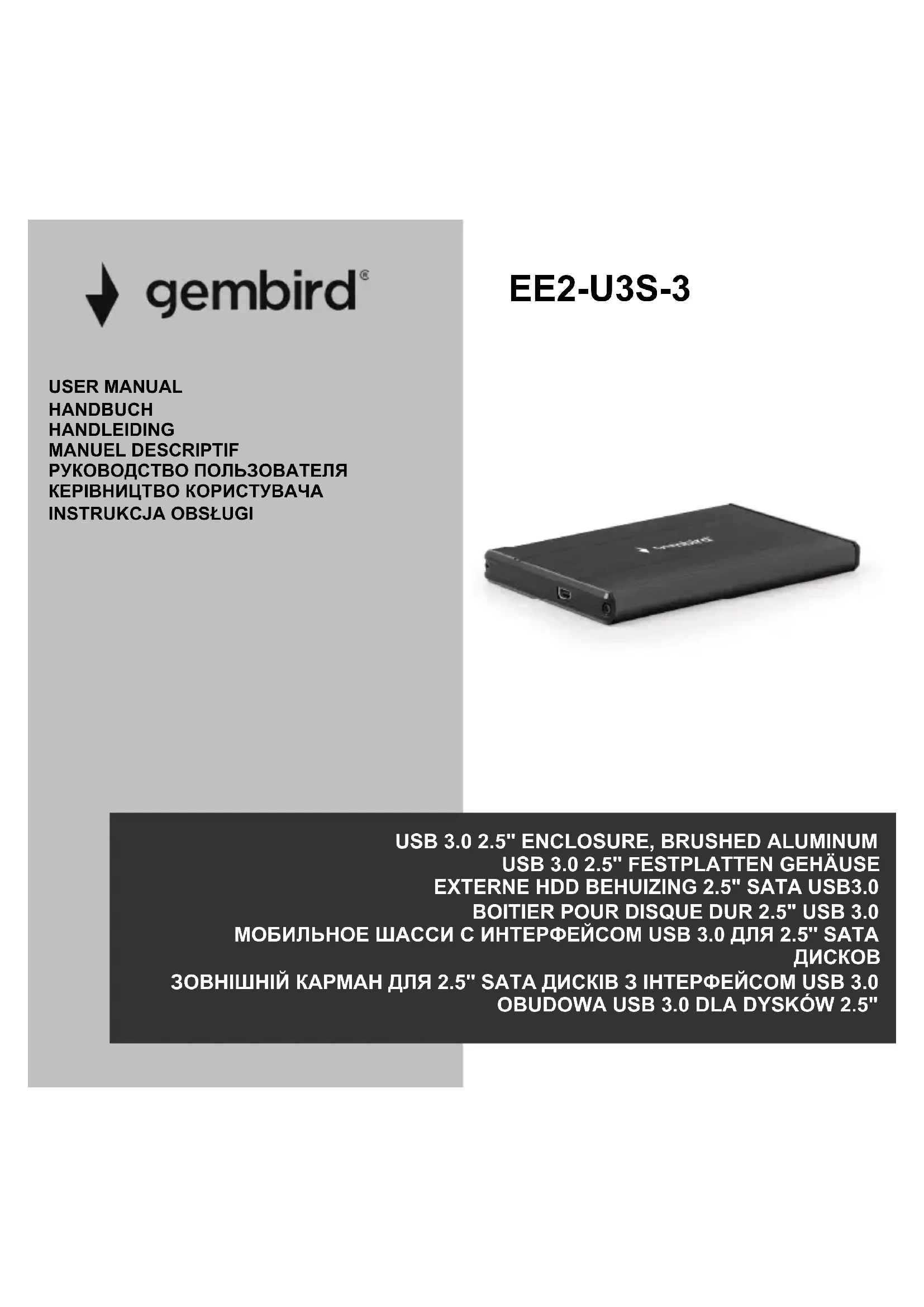 Évitez de débrancher le Gembird EE2-U3S-3 pendant le transfert de données pour prévenir la perte de données ou des dommages au périphérique.