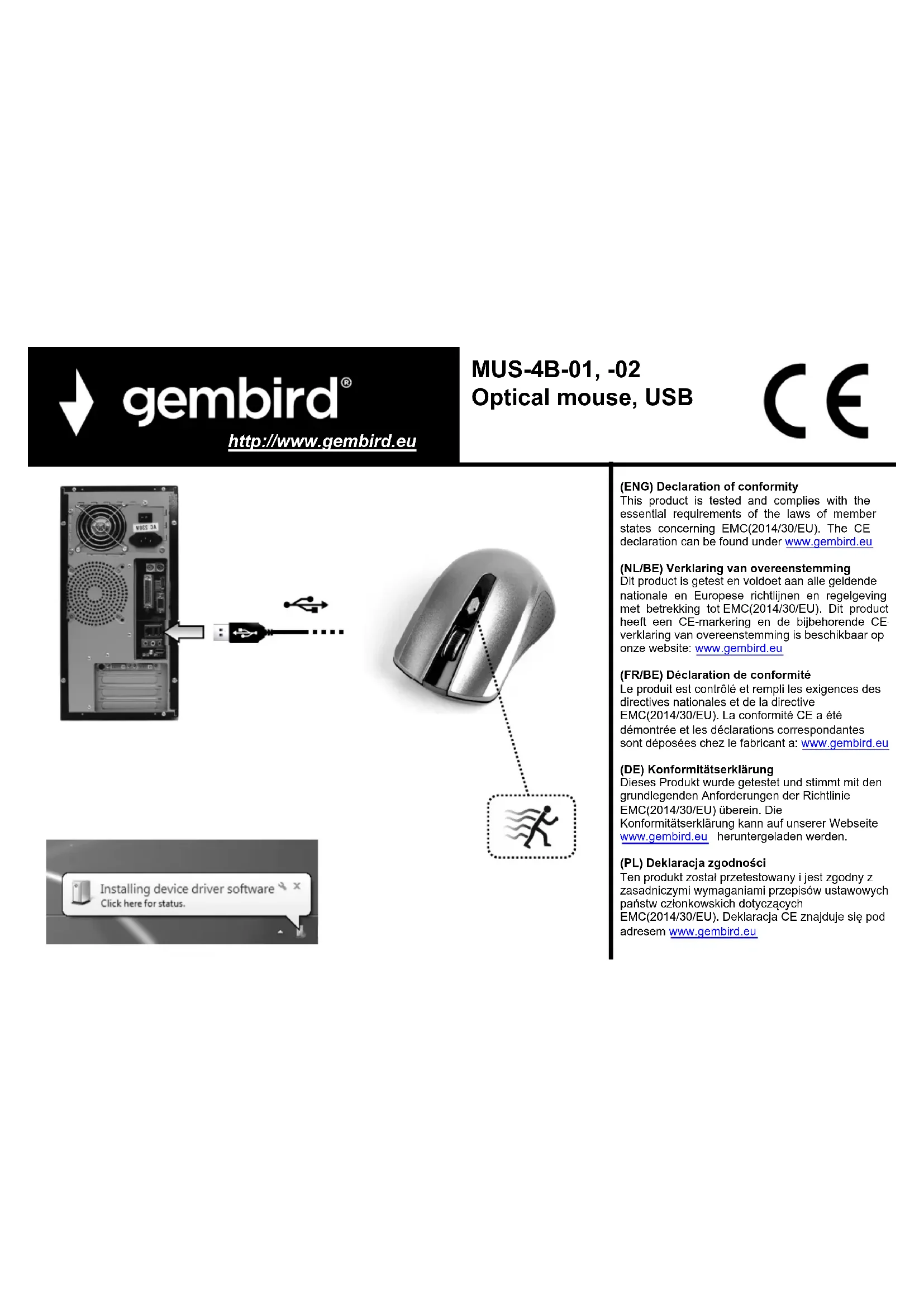 MUS-4B-01 - Souris Gembird - Notice d'utilisation et mode d'emploi gratuit