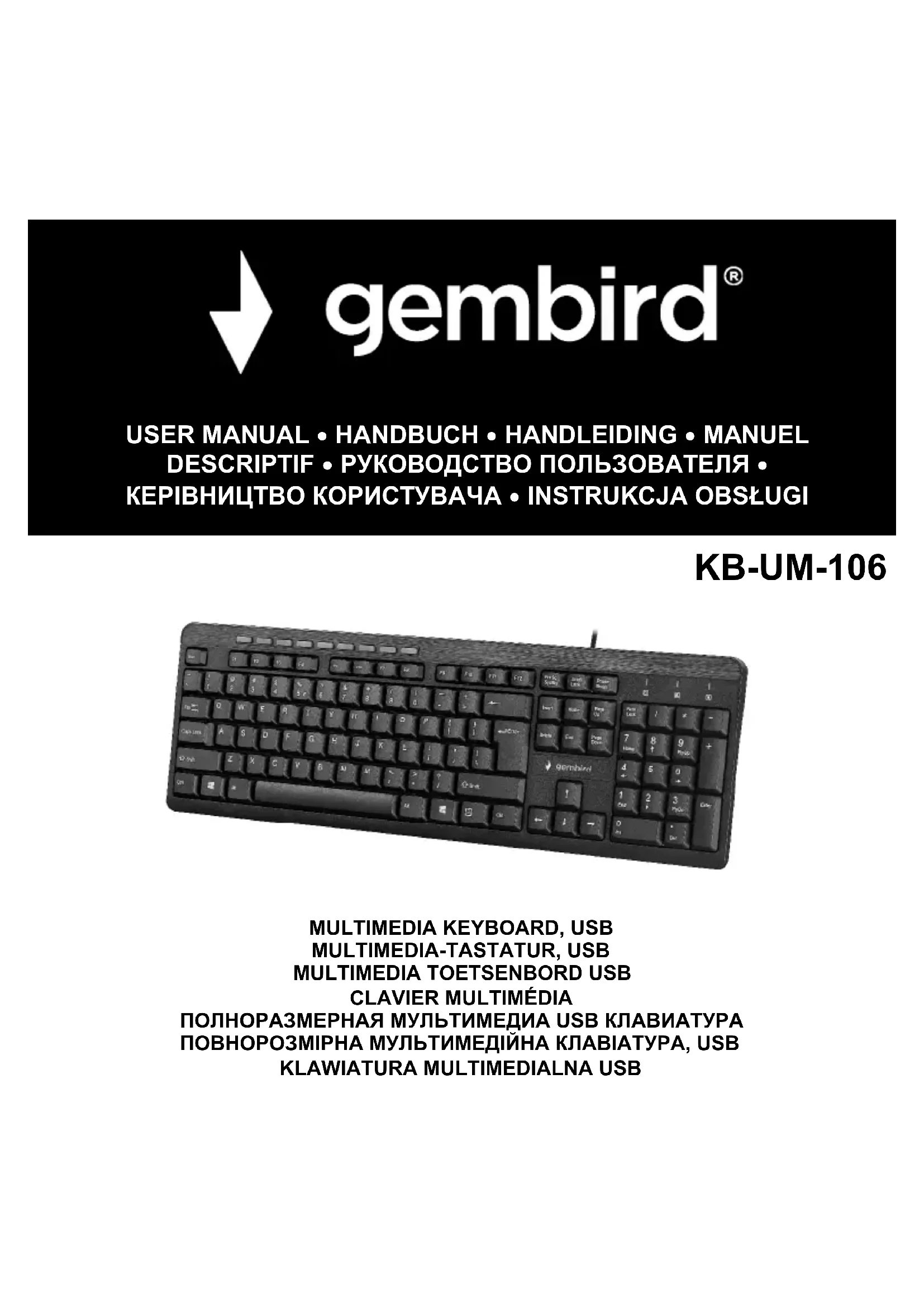 Retrouvez gratuitement la notice de l'appareil KB-UM-106 Gembird au format PDF.