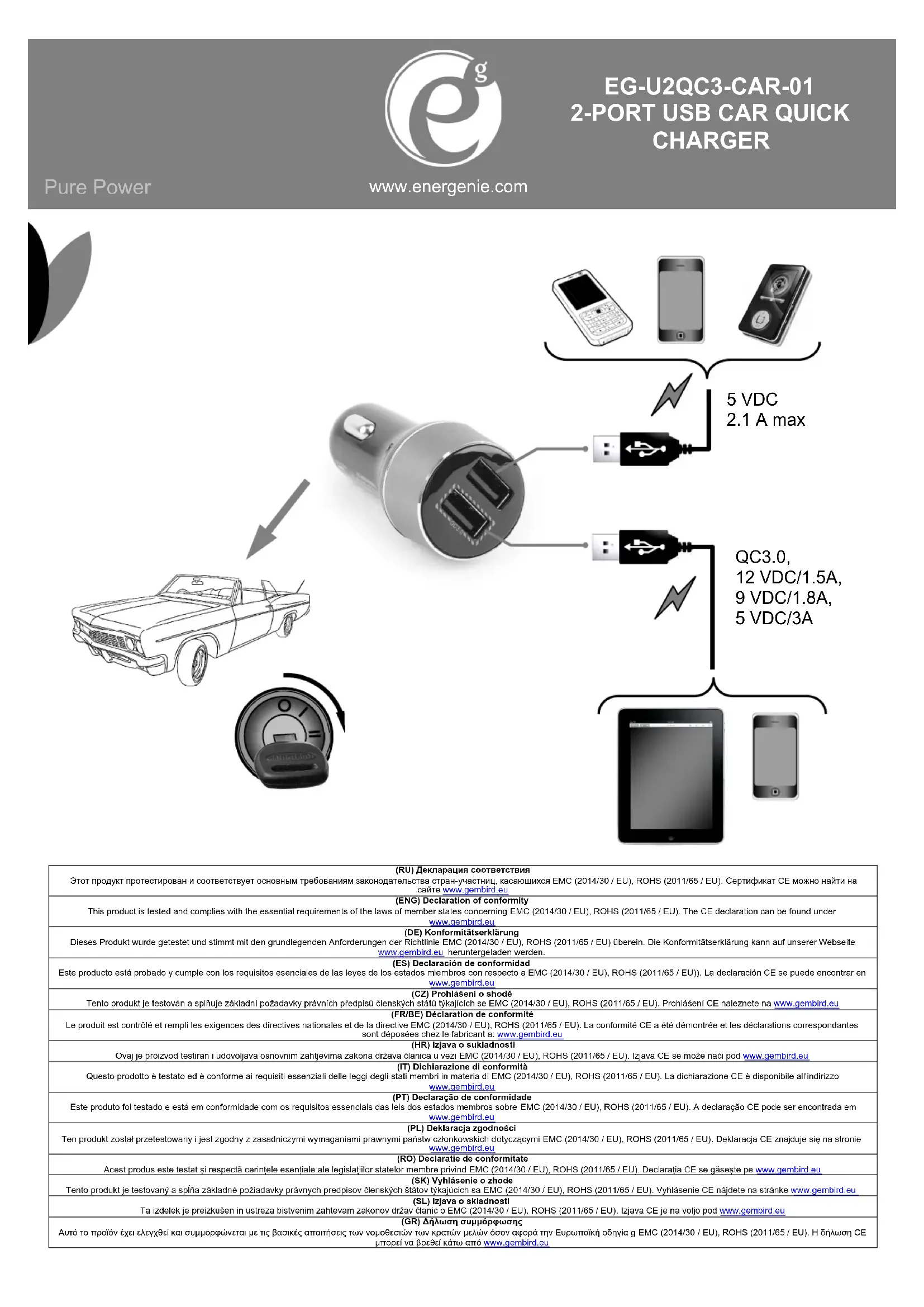 Retrouvez gratuitement la notice de l'appareil EG-U2QC3-CAR-01 EnerGenie au format PDF.