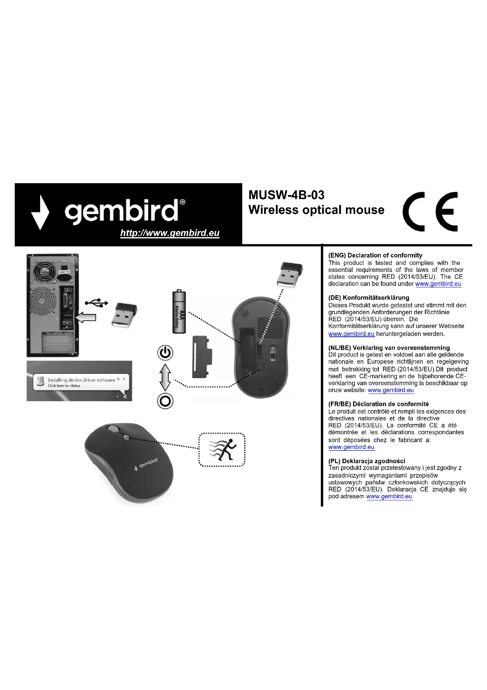Retrouvez gratuitement la notice de l'appareil MUSW-4B-03 Gembird au format PDF.