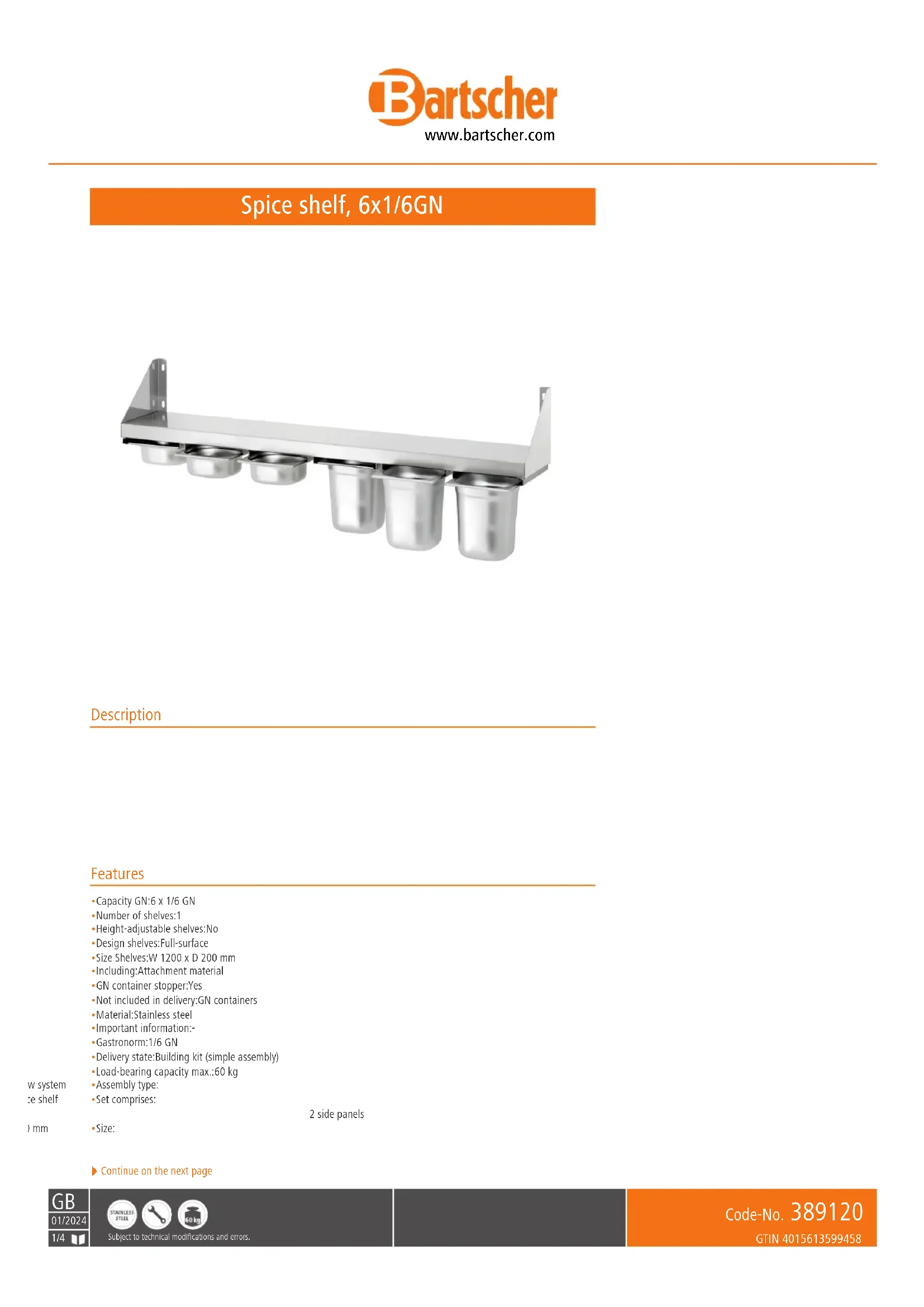Retrouvez gratuitement la notice de l'appareil 389120 BARTSCHER au format PDF.