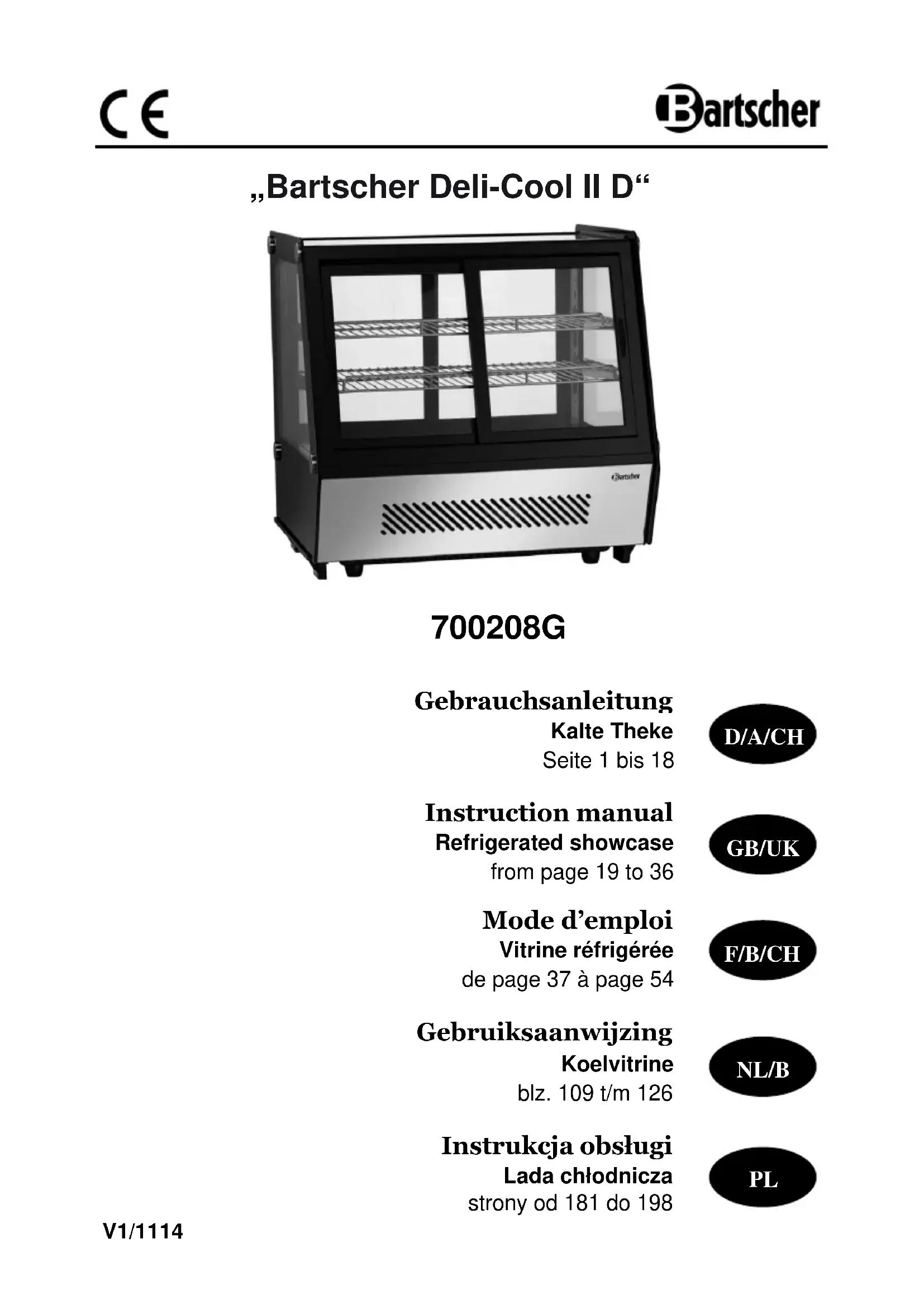 Retrouvez gratuitement la notice de l'appareil DeliCool II-D 700208G BARTSCHER au format PDF.