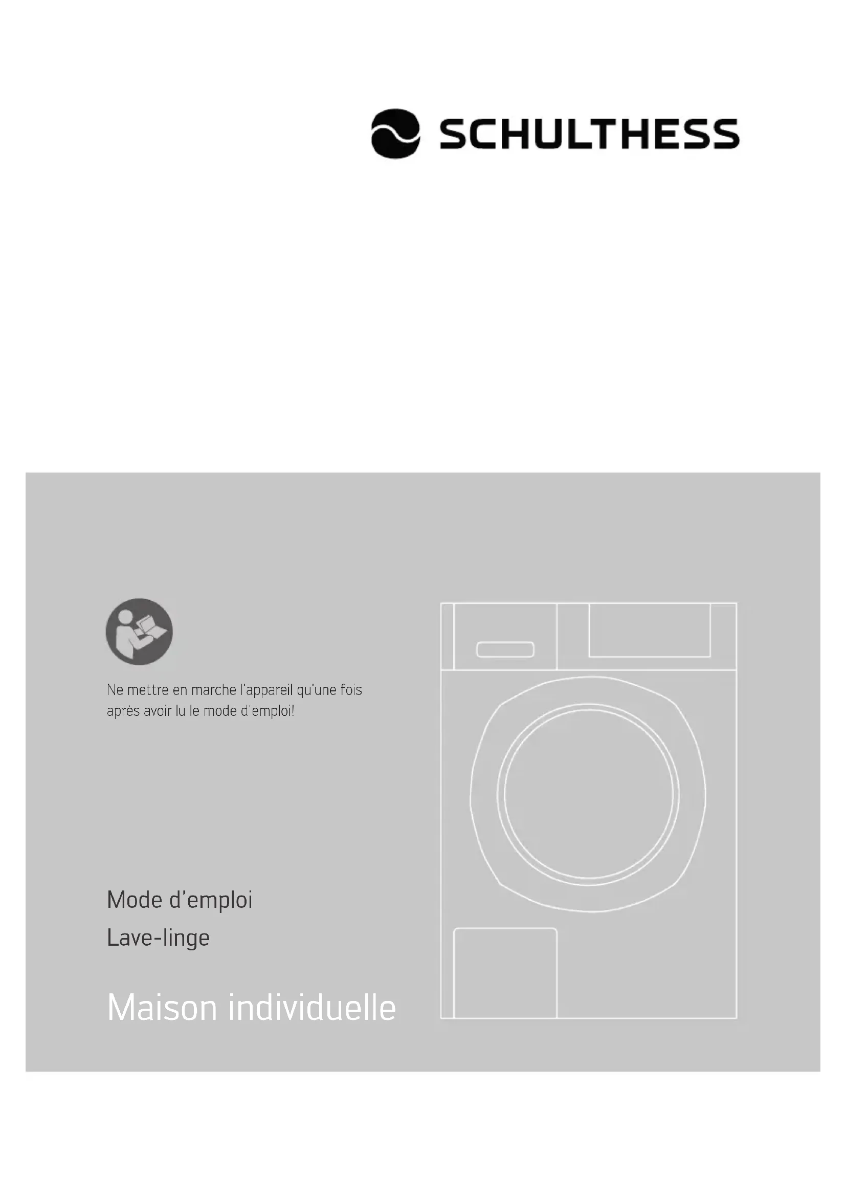 - Ne mettre en marche l’appareil qu’une fois après avoir lu le mode d‘emploi! Mode d’emploi Lave-linge Maison individuelle2 Symboles Lisez les instructions. Les avertissements de sécurité sont précédés d’un triangle de signalisa- tion. Il est indiqué comment éviter le danger. Les avertissements caractérisent la gravité du danger qui survient si celui-ci n’est pas évité. Avertissement indique que de graves dommages corporels, voir même un danger de mort peuvent survenir. Attention indique que des dommages aux biens peuvent survenir.3 Chère cliente, cher client Nous sommes fort heureux que vous vous soyez décidé pour un lave-linge Schulthess. Votre nouveau lave-linge est le fruit de plusieurs années d’efforts de développement. Des normes de qualité extrêmement rigoureuses en matière de conception et de fabrication lui garantissent une longue durée de vie. Sa conception répond à toutes les exigences actuelles et futures de l’entretien moderne du linge. Il offre un choix varié et personnalisé de programmes. Sa sobriété en matière de consommation d’eau, d’énergie et d’agents de lavage contribue à ménager notre environnement tout en vous garantissant un fonctionne- ment particulièrement économique. Nous vous prions de lire avec soin le présent mode d’emploi, afin que vous puissiez profiter de tous es avantages et possibilités de votre nouveau lave-linge. Observez notamment les conseils de sécurité et le livret de garantie et d’assistance ci-joint. Nous vous souhaitons beaucoup de plaisir avec votre nouvelle machine Schulthess. Cordialement Schulthess Maschinen SA4 Sommaire Sécurité et mesures de protection p. 6