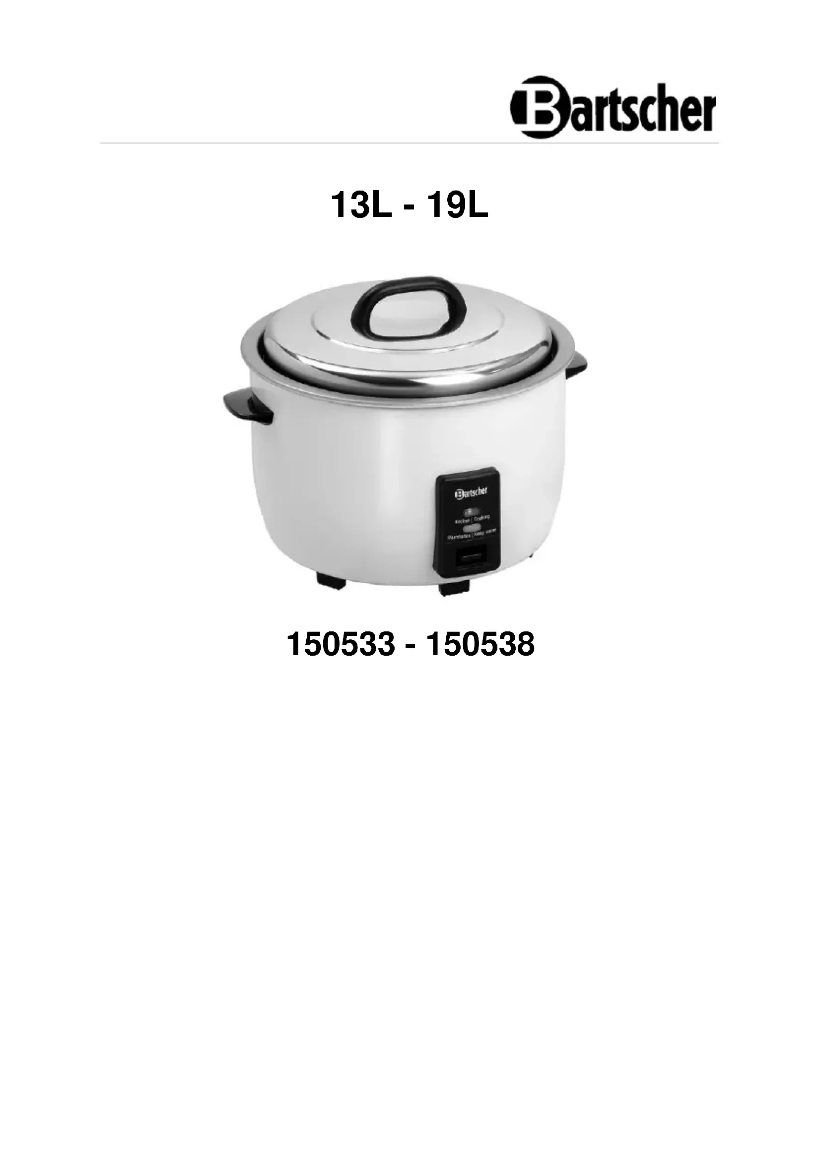 150538 - Cuiseur à riz BARTSCHER - Notice d'utilisation et mode d'emploi gratuit