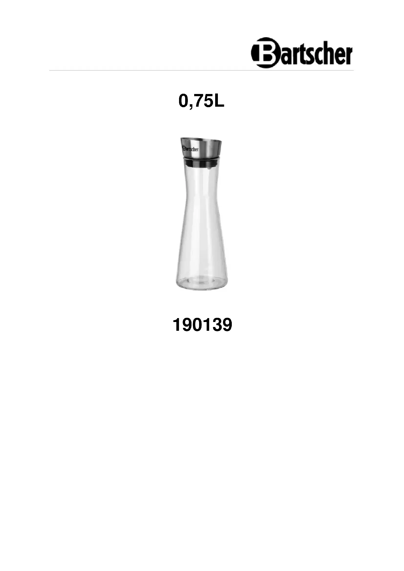Utilisation conforme à l’usage La carafe en verre d’une contenance de 750 ml est conçu pour servir les boissons.4 / 4 190139