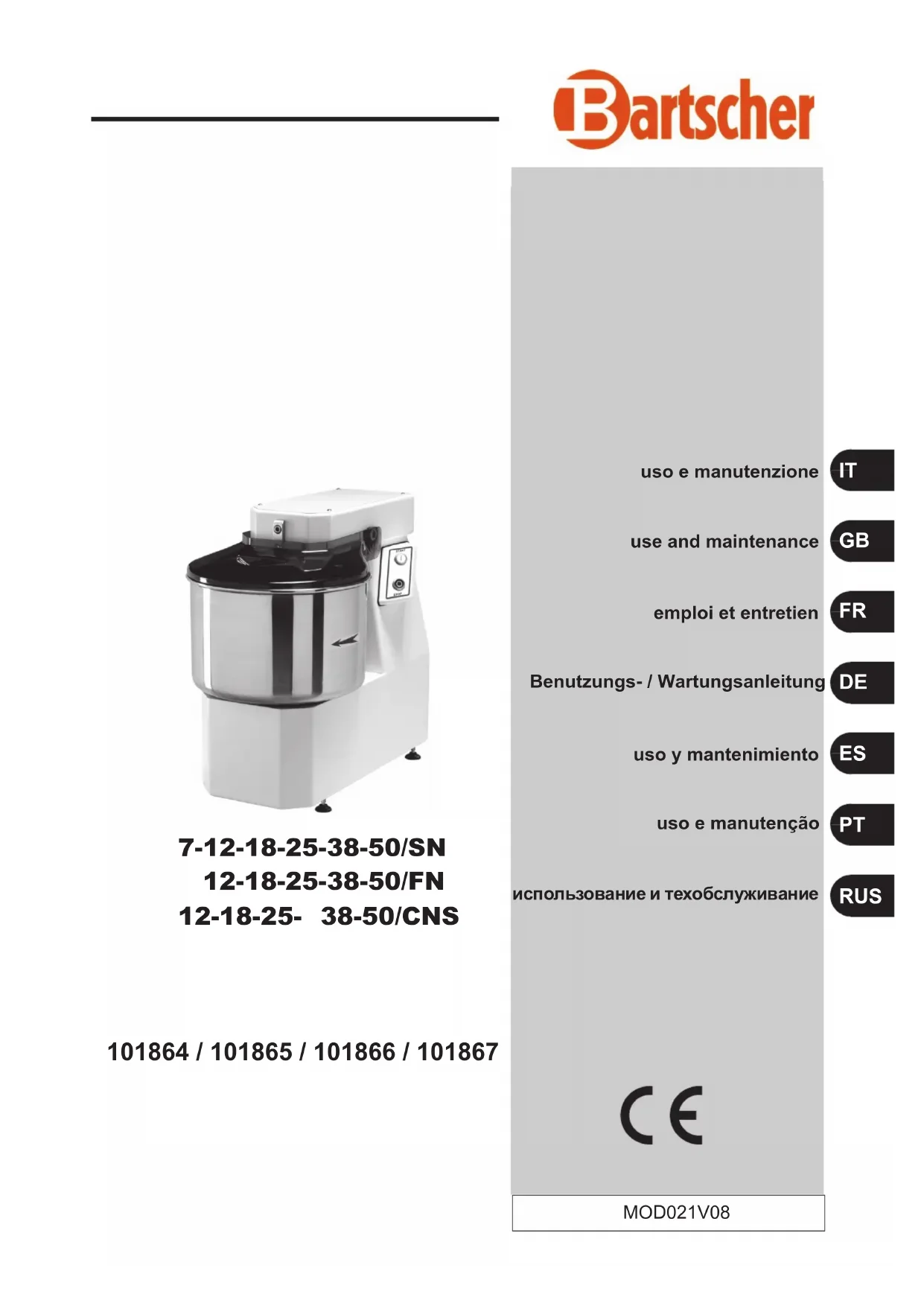 MODE D'EMPLOI 101867 BARTSCHER