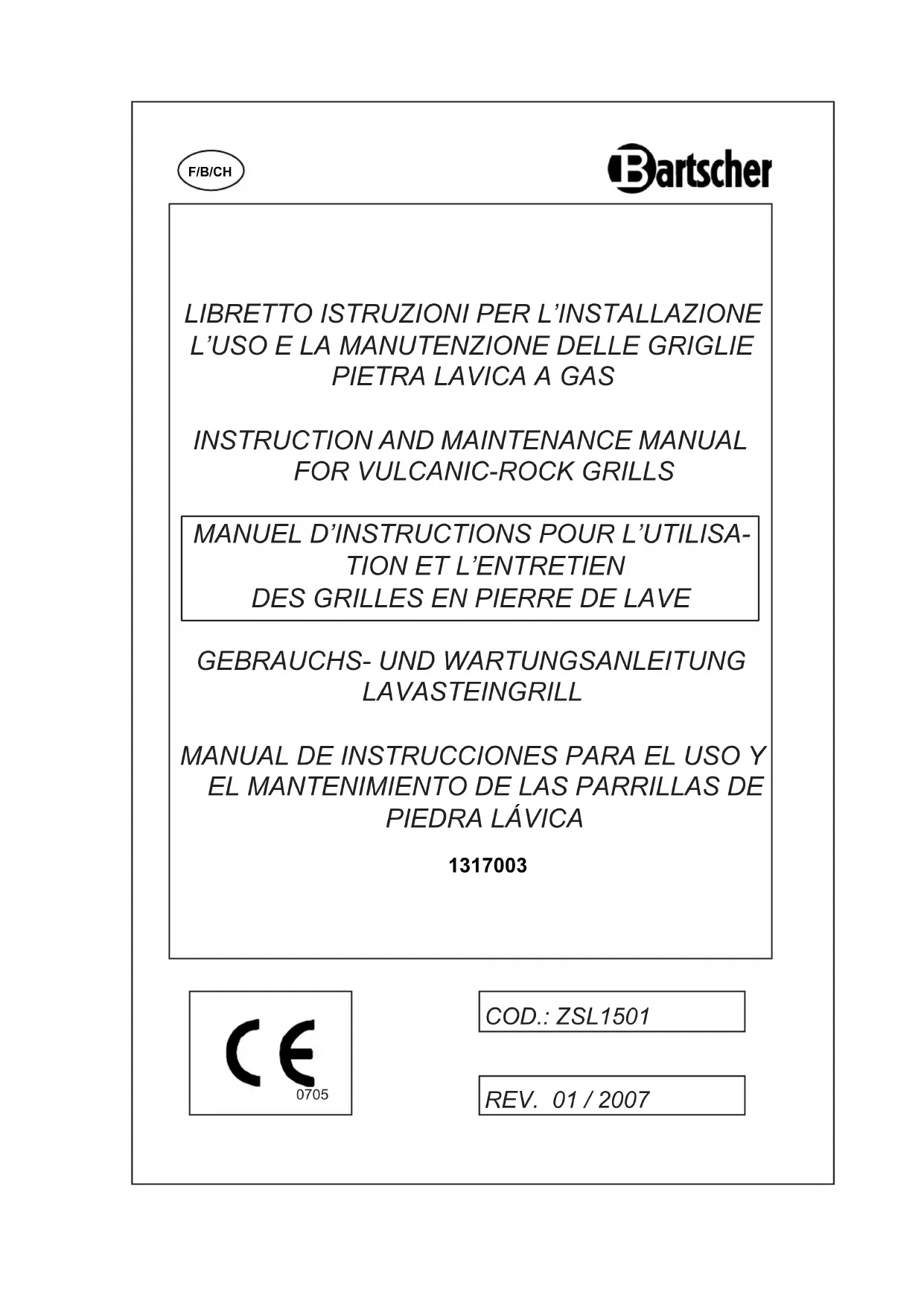 Retrouvez gratuitement la notice de l'appareil 1317003 BARTSCHER au format PDF.
