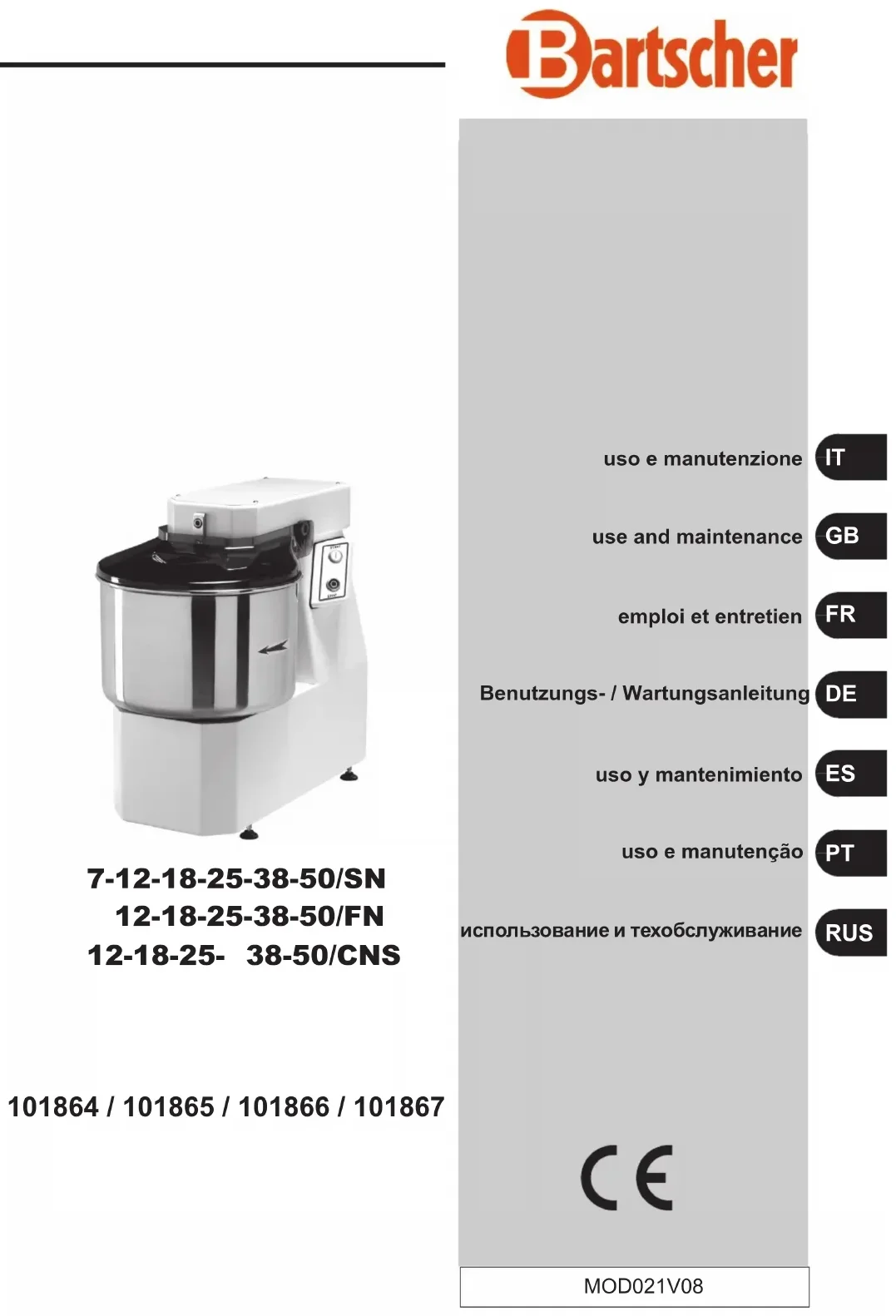 101866 - Robot ménager BARTSCHER - Notice d'utilisation et mode d'emploi gratuit