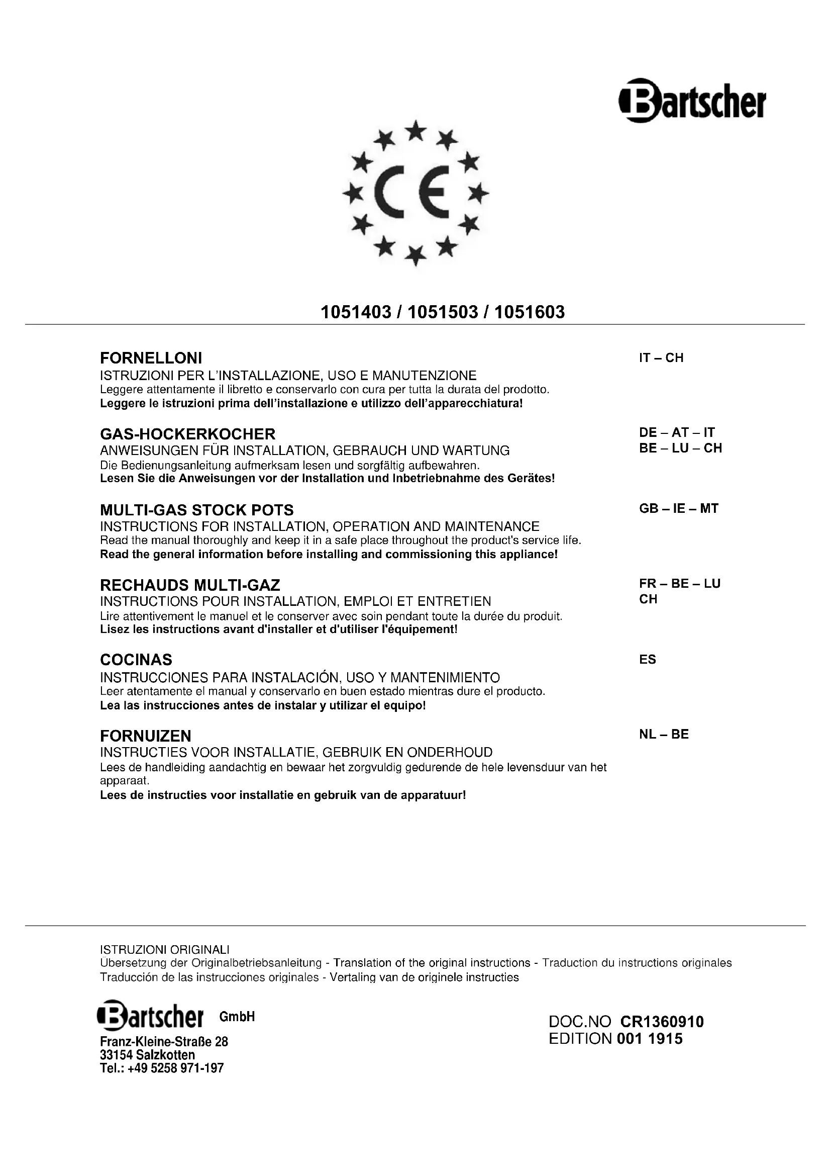 G-2KB 1K700 - Cuisinière BARTSCHER - Notice d'utilisation et mode d'emploi gratuit