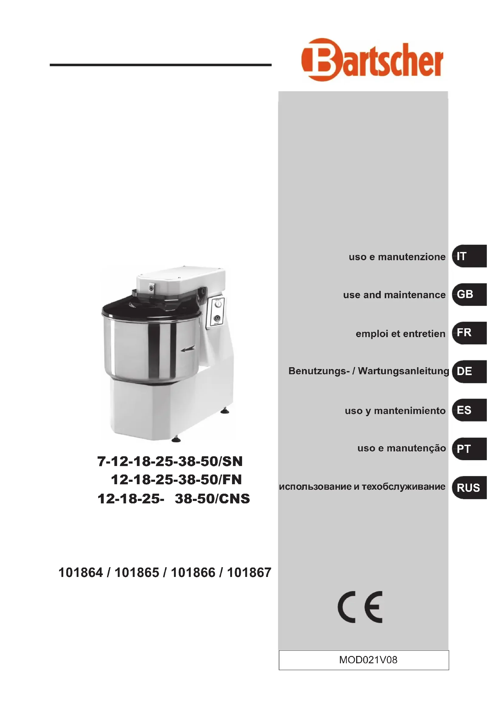 Retrouvez gratuitement la notice de l'appareil 101865 BARTSCHER au format PDF.