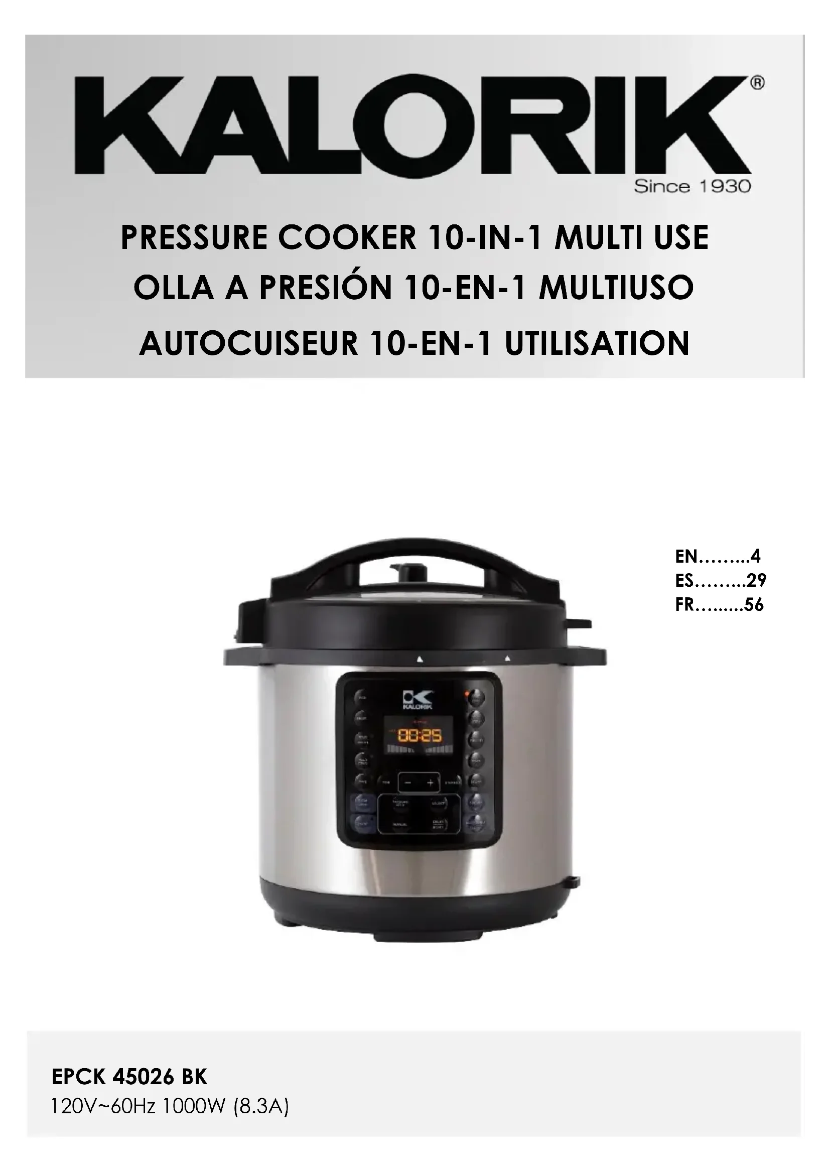 MODE D'EMPLOI EPCK 45026 BK KALORIK