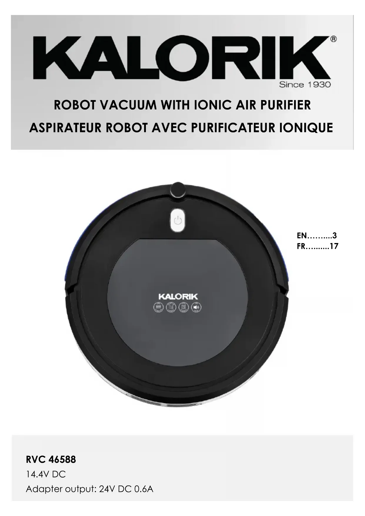 Retrouvez gratuitement la notice de l'appareil RVC 46588 KALORIK au format PDF.