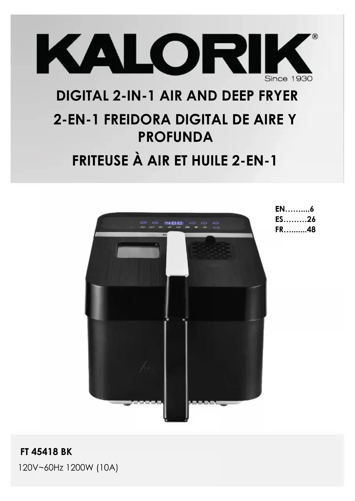 Retrouvez gratuitement la notice de l'appareil FT 45418 KALORIK au format PDF.