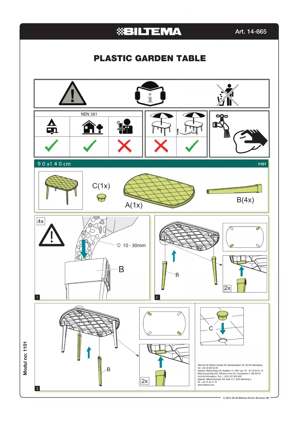 14-665 - Mobilier de jardin Biltema - Notice d'utilisation et mode d'emploi gratuit