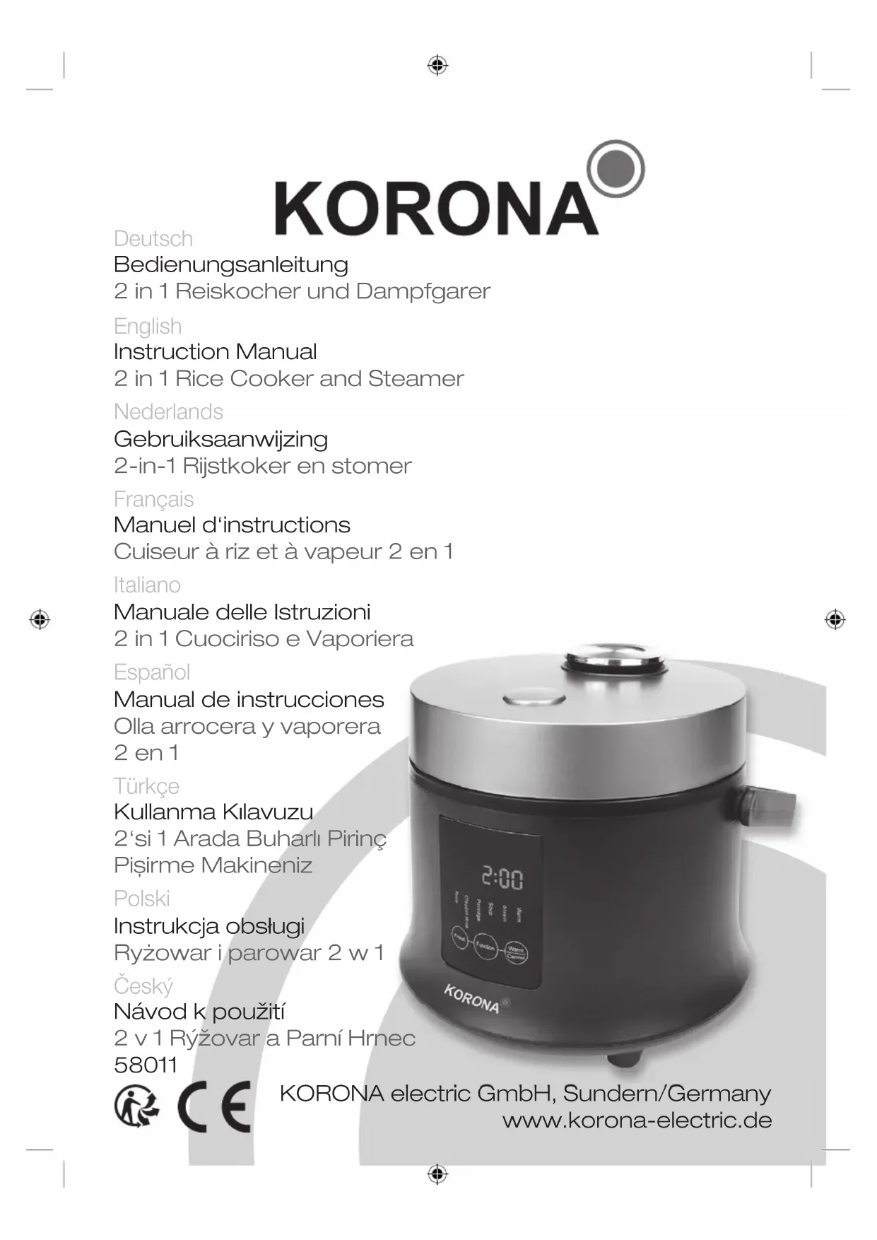 58011 - Cuiseur à riz KORONA - Notice d'utilisation et mode d'emploi gratuit