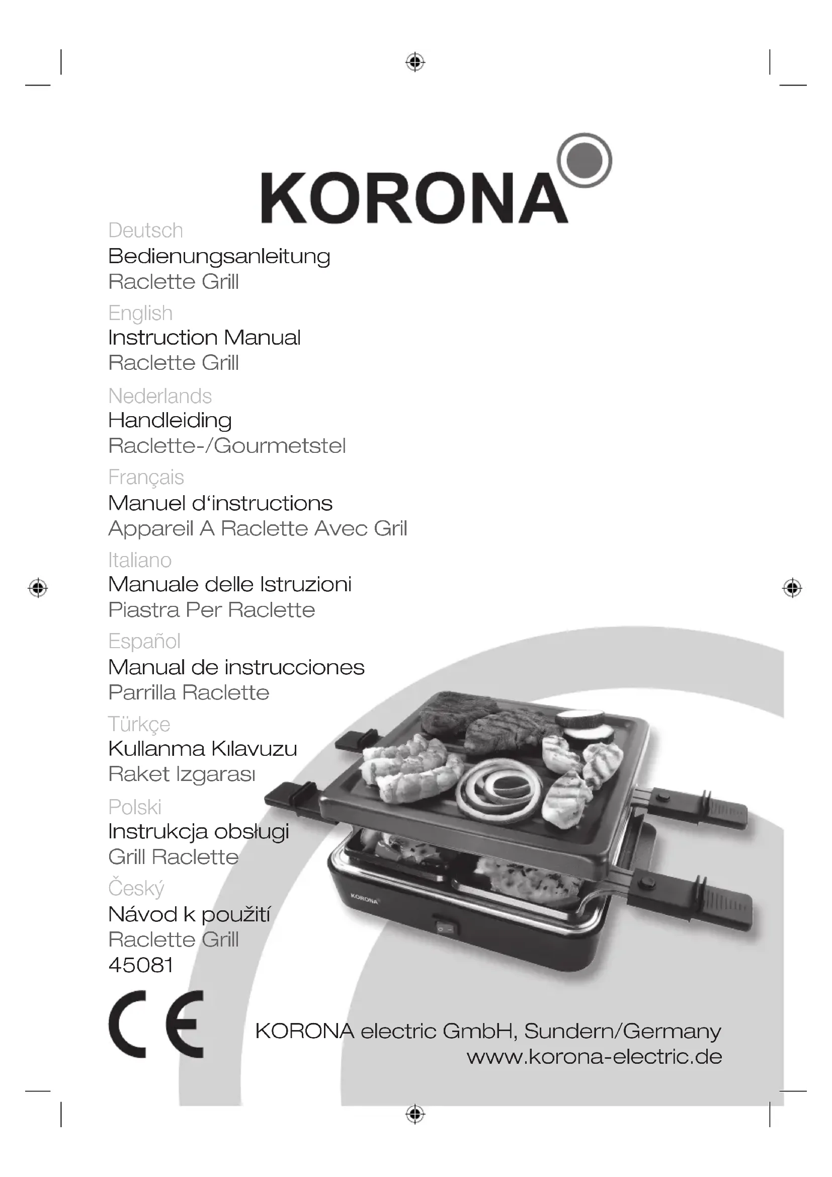 45081 - Appareil à fondue, raclette et wok KORONA - Notice d'utilisation et mode d'emploi gratuit
