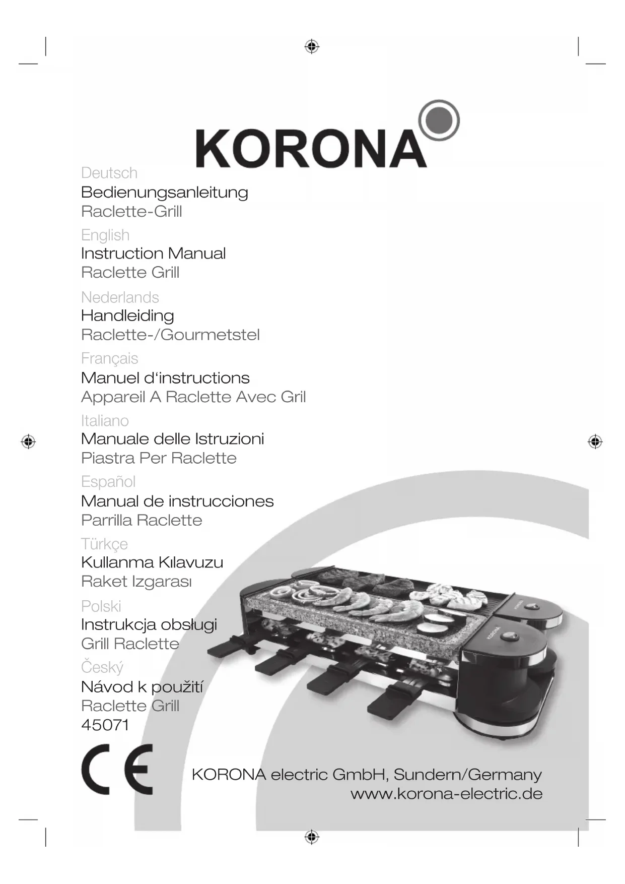 45071 - Appareil à fondue, raclette et wok KORONA - Notice d'utilisation et mode d'emploi gratuit