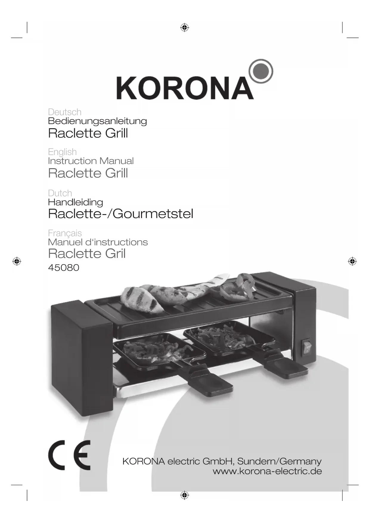 45080 - Appareil à fondue, raclette et wok KORONA - Notice d'utilisation et mode d'emploi gratuit