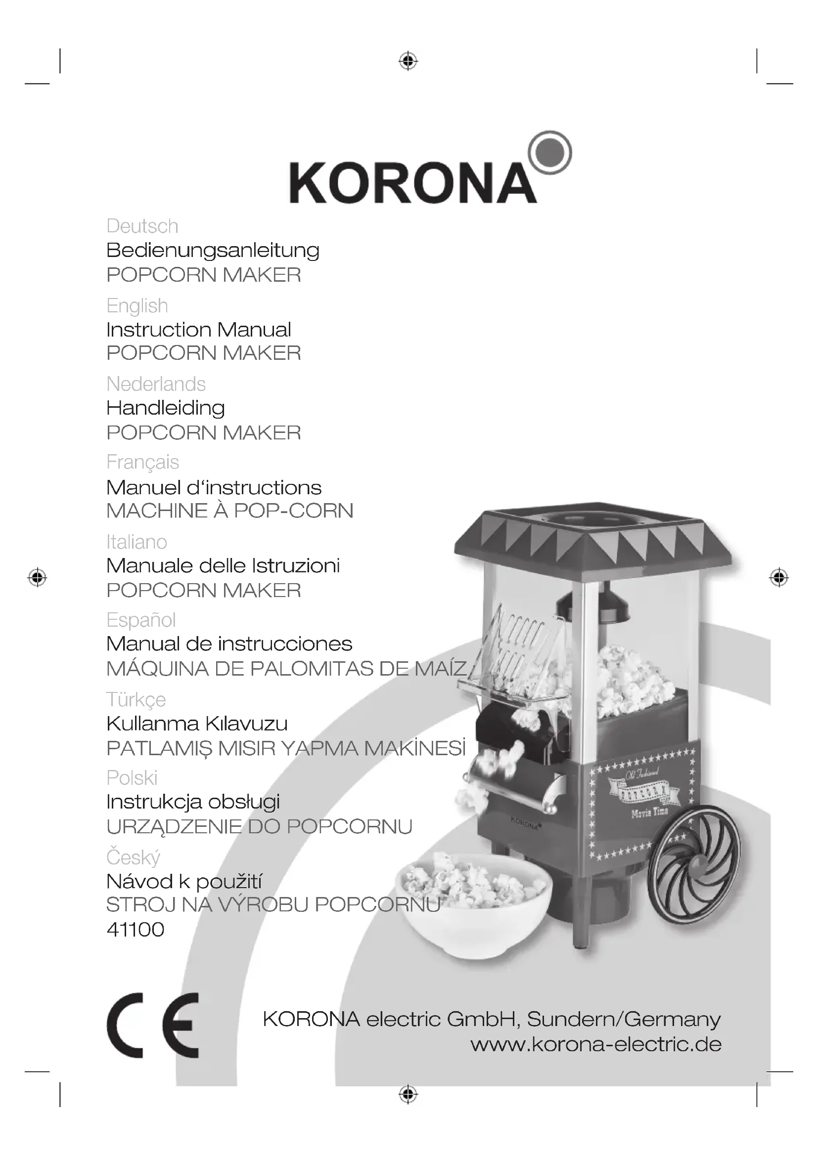 41100 - Machine à popcorn KORONA - Notice d'utilisation et mode d'emploi gratuit