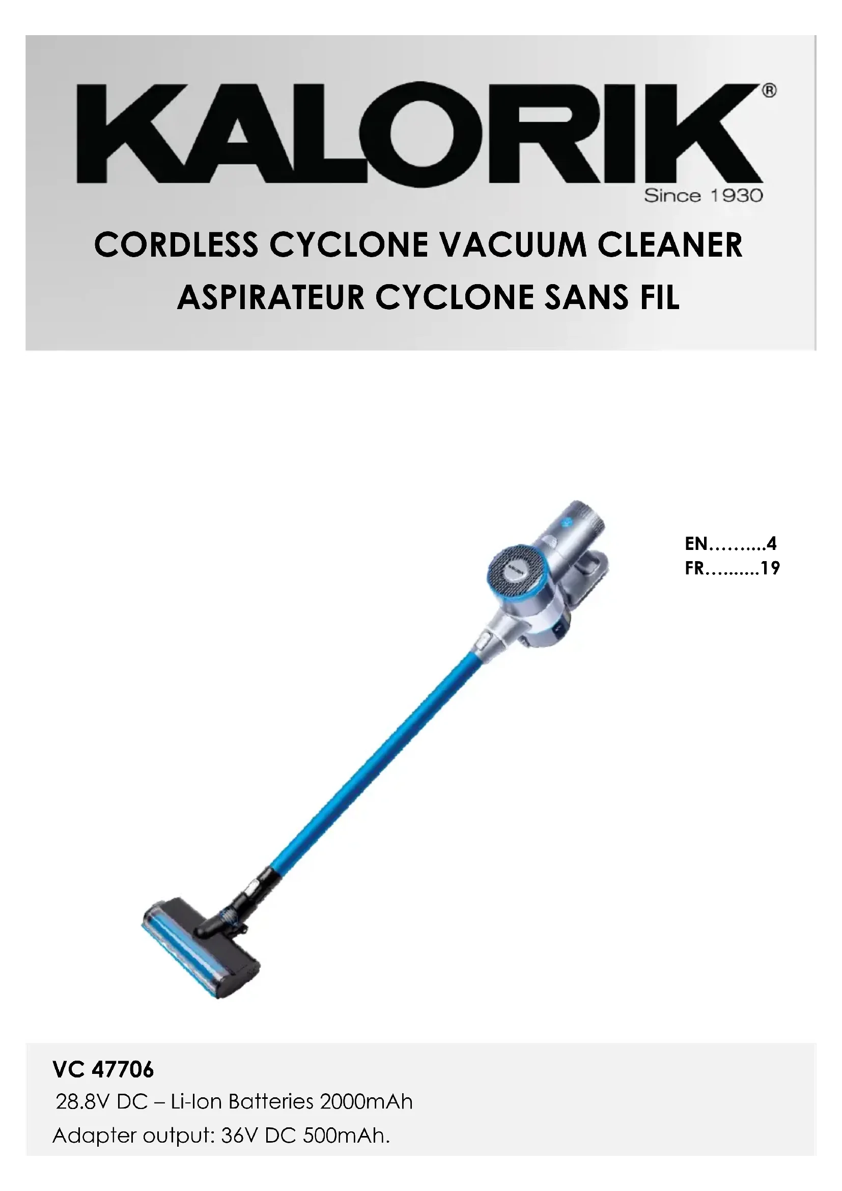 MODE D'EMPLOI VC 47706 KALORIK