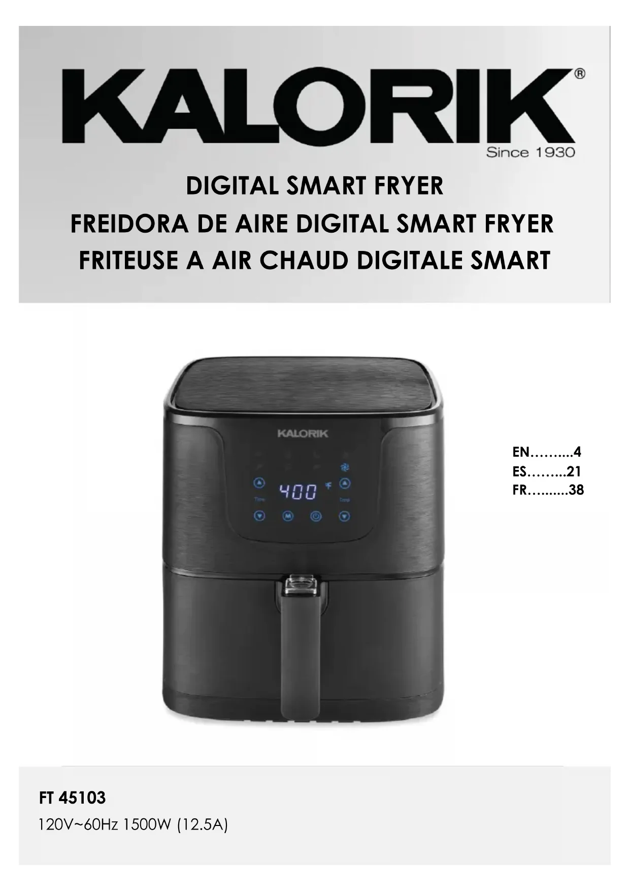 Retrouvez gratuitement la notice de l'appareil FT 45103 KALORIK au format PDF.