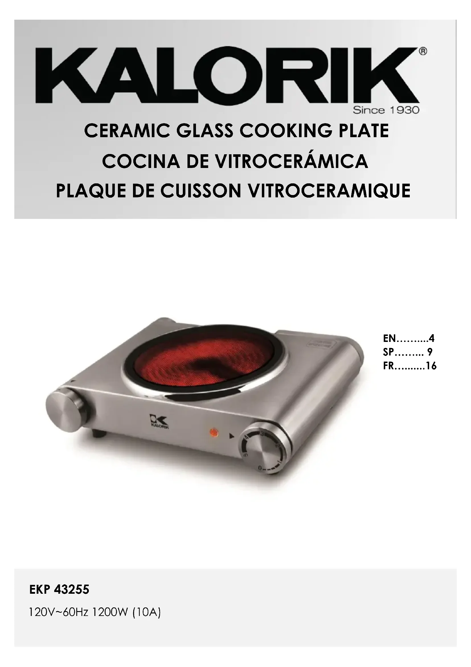 Retrouvez gratuitement la notice de l'appareil EKP 43255 KALORIK au format PDF.