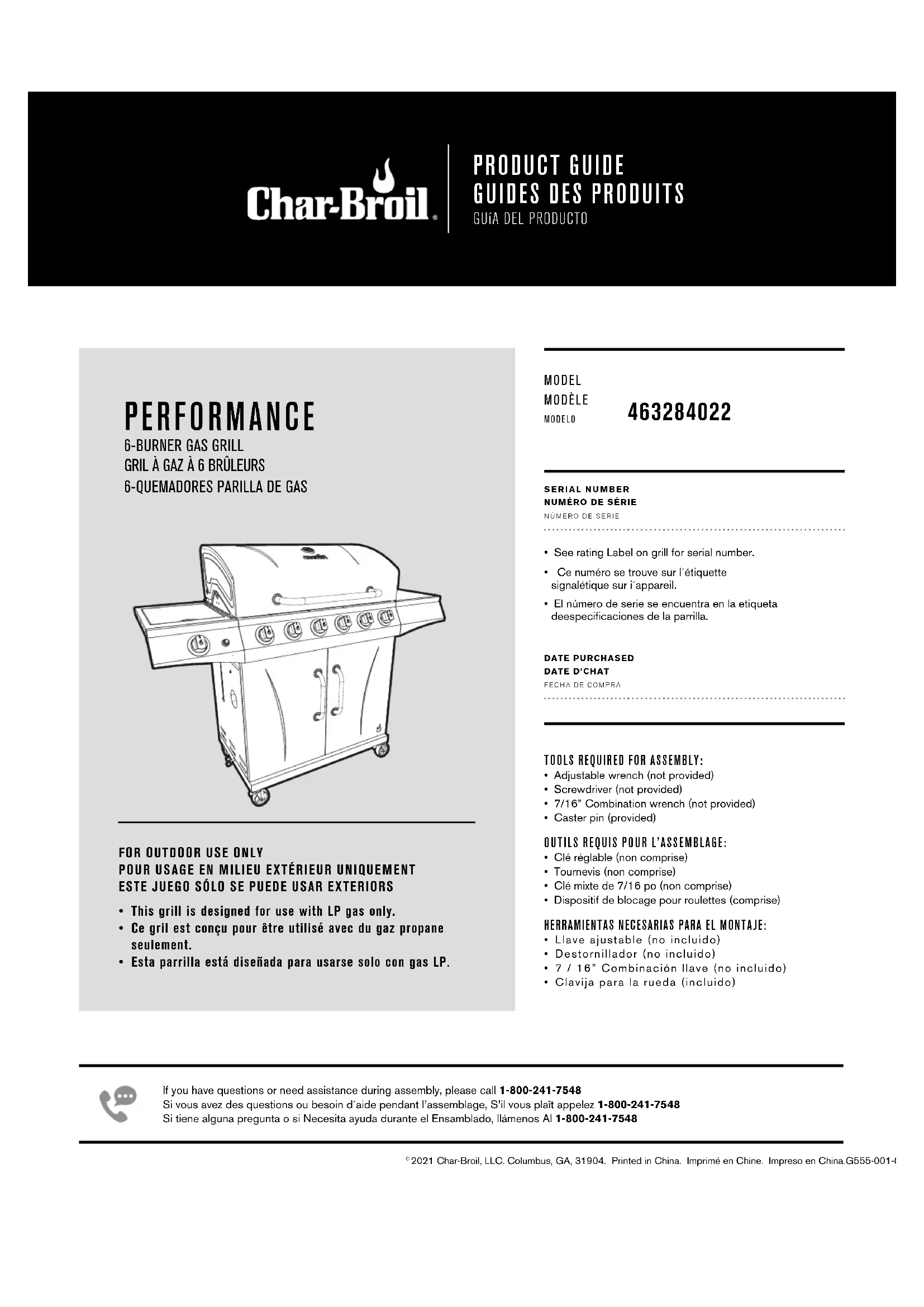 Retrouvez gratuitement la notice de l'appareil Performance 463284022 Char-Broil au format PDF.