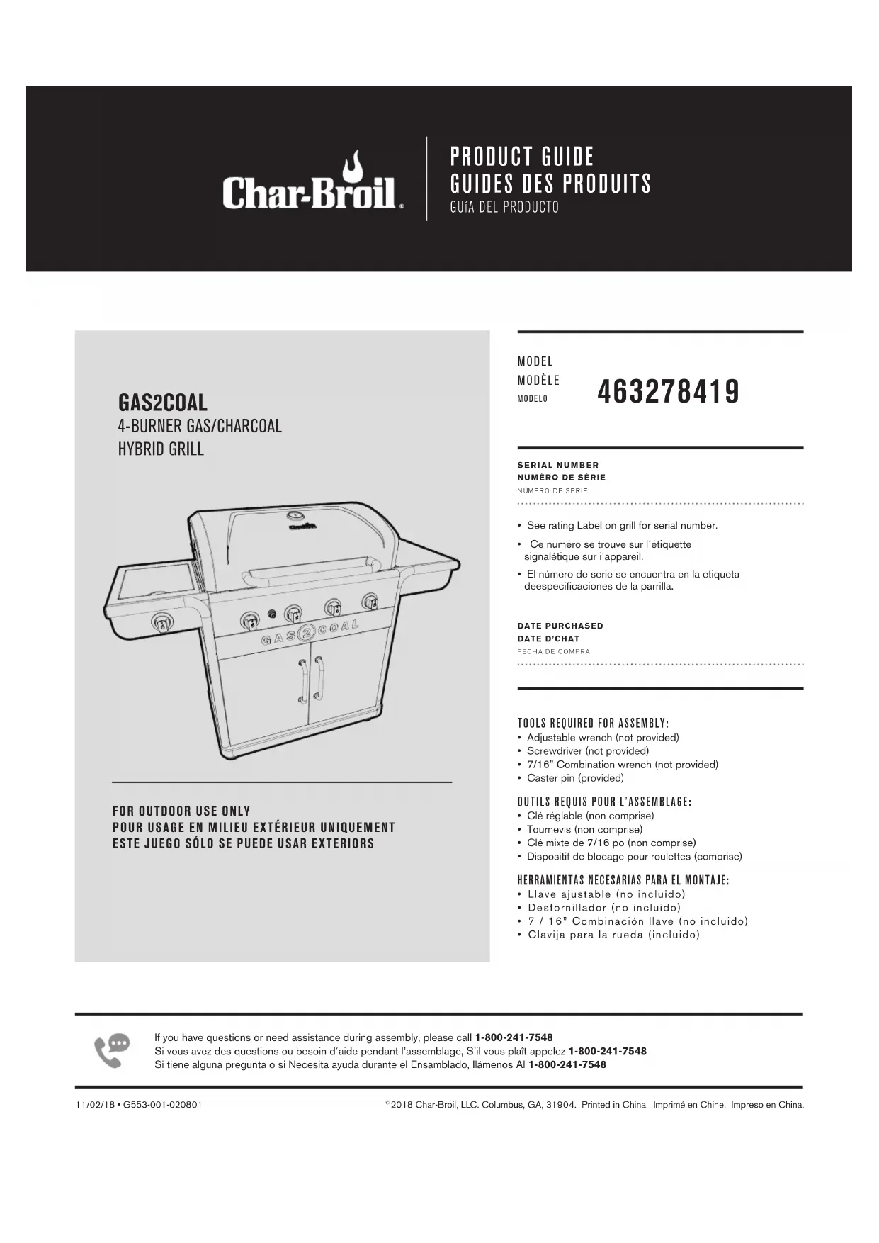 Retrouvez gratuitement la notice de l'appareil Gas2Coal 463278419 Char-Broil au format PDF.