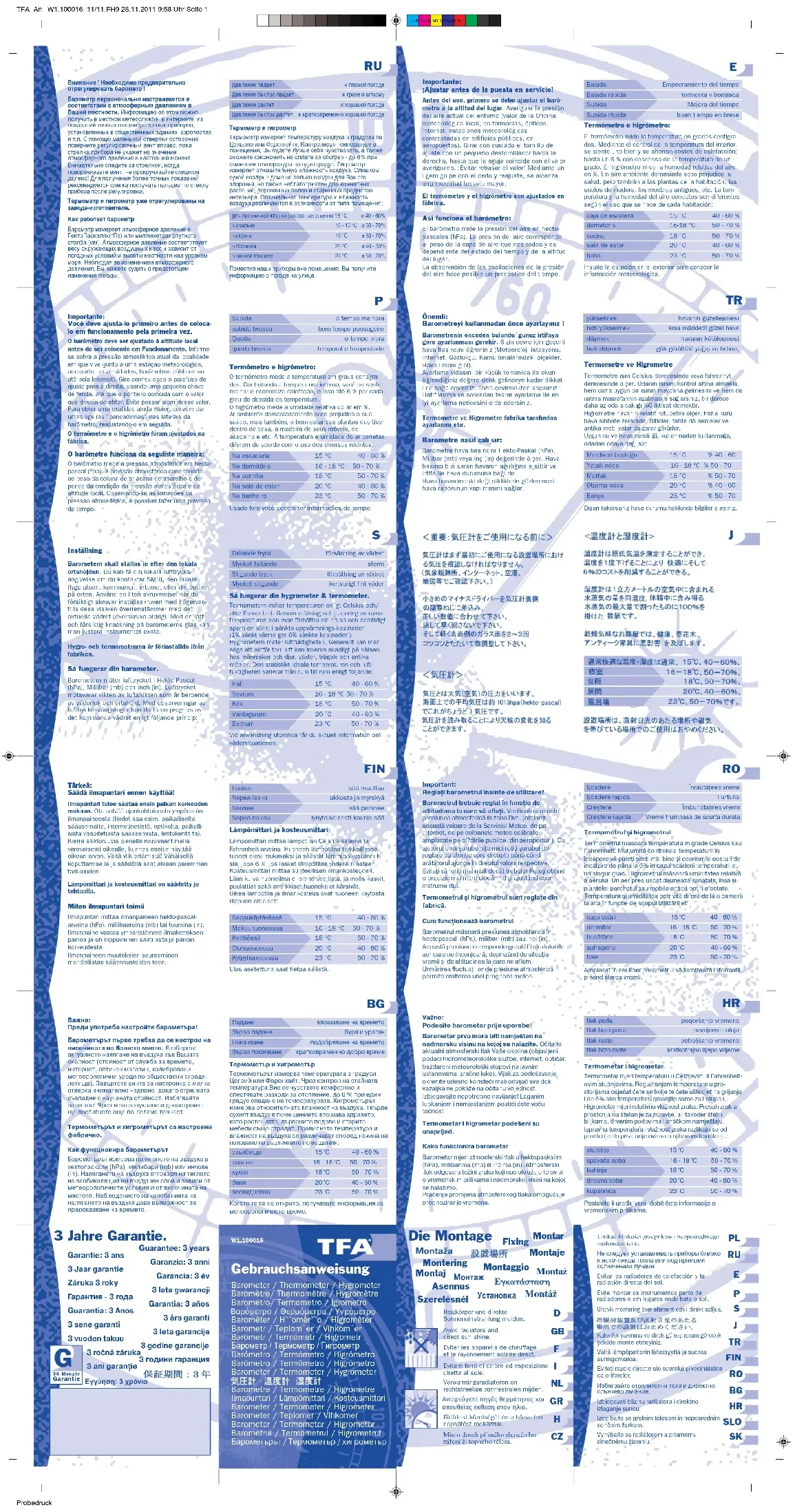 Téléchargez la notice de votre Station Météo au format PDF gratuitement ! Retrouvez votre notice 20.1076.01.B - TFA et reprennez votre appareil électronique en main. Sur cette page sont publiés tous les documents nécessaires à l'utilisation de votre appareil 20.1076.01.B de la marque TFA.