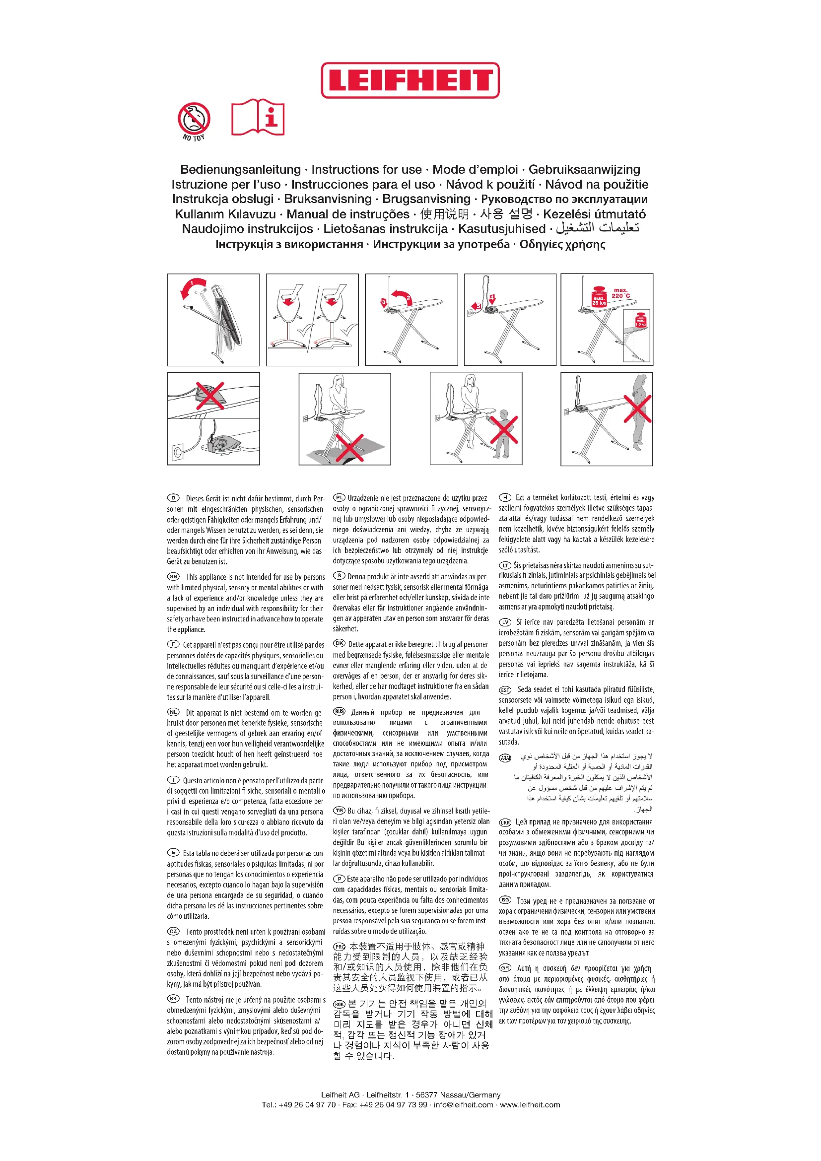 6086 - Table de repassage Leifheit - Notice d'utilisation et mode d'emploi gratuit