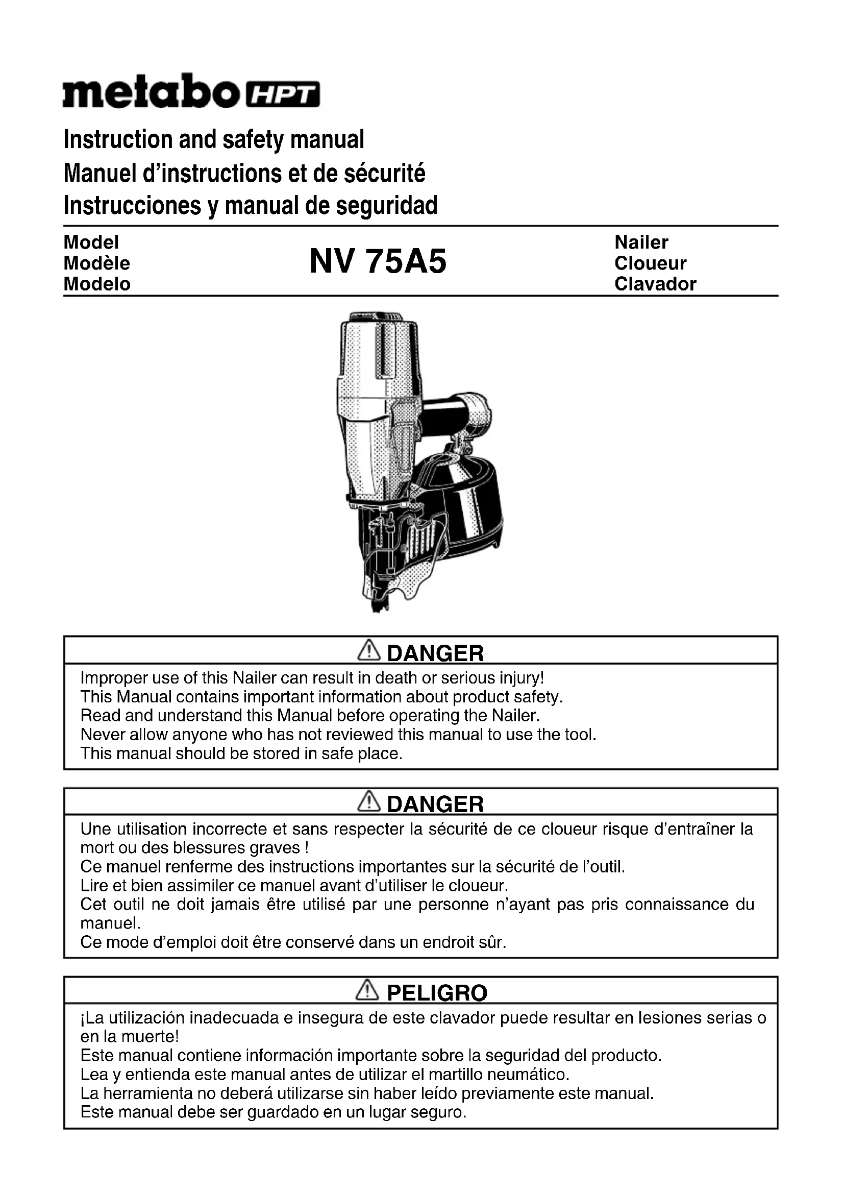 Retrouvez gratuitement la notice de l'appareil NV75A5 HiKOKI au format PDF.