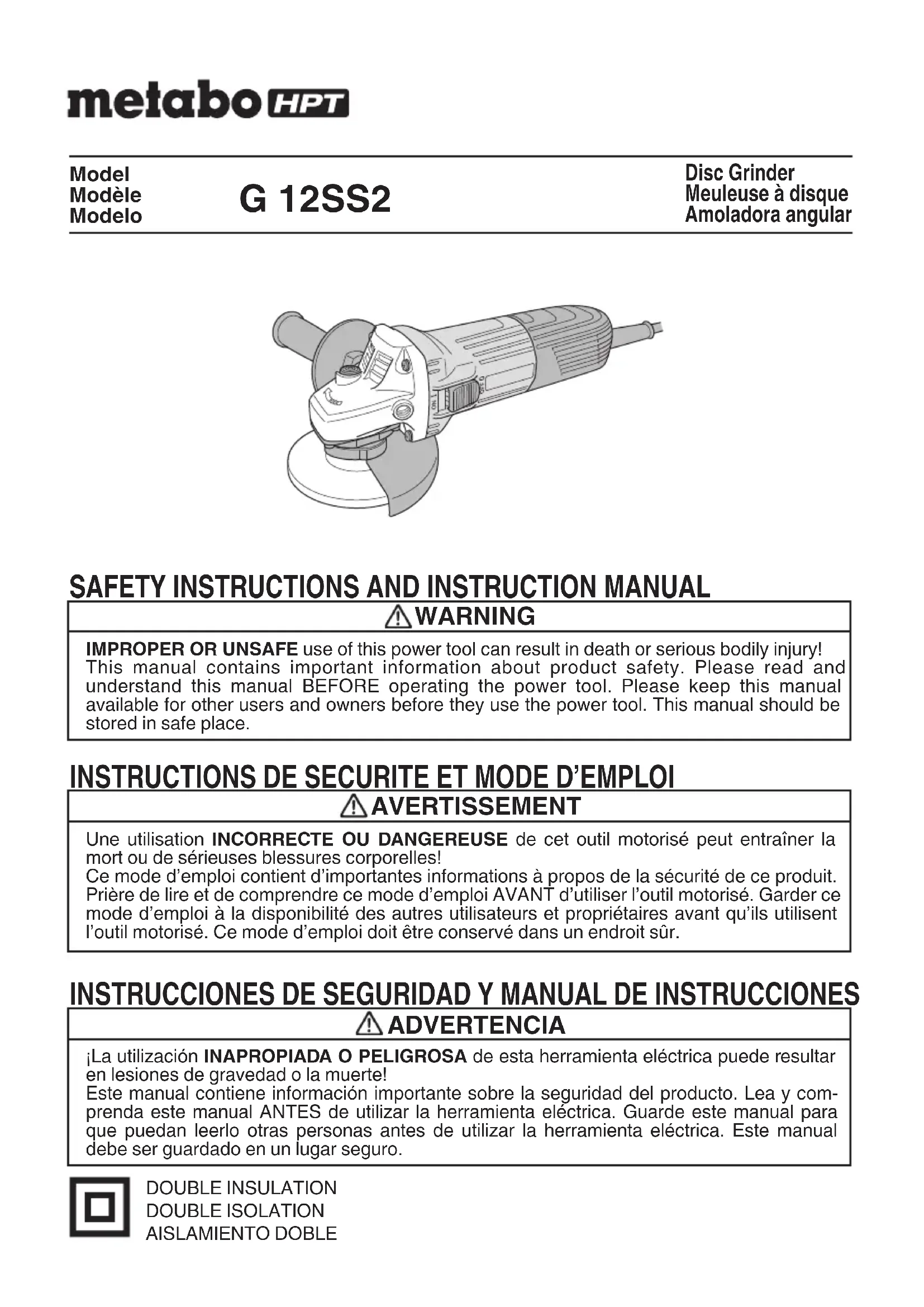Retrouvez gratuitement la notice de l'appareil G12SS2 HiKOKI au format PDF.