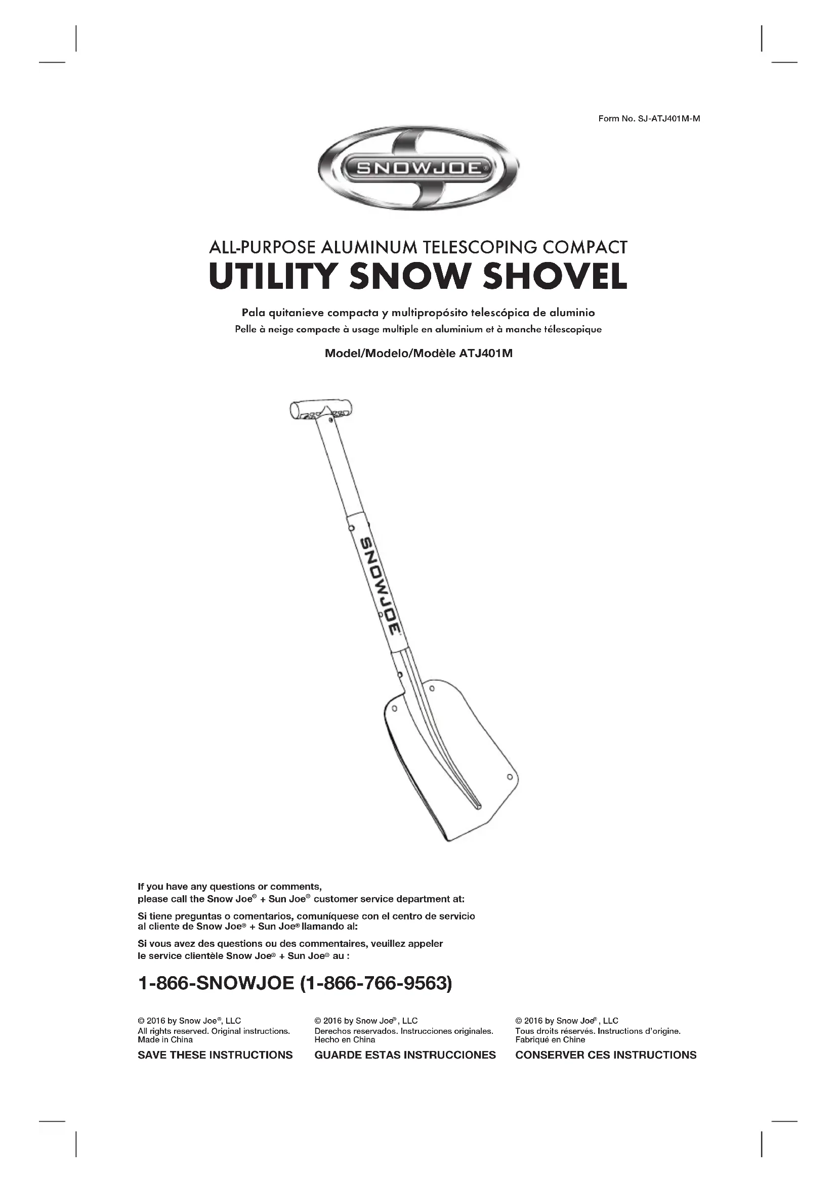Pala quitanieve compacta y multipropósito telescópica de aluminio Pelle à neige compacte à usage multiple en aluminium et à manche télescopique Model/Modelo/Modèle ATJ401M