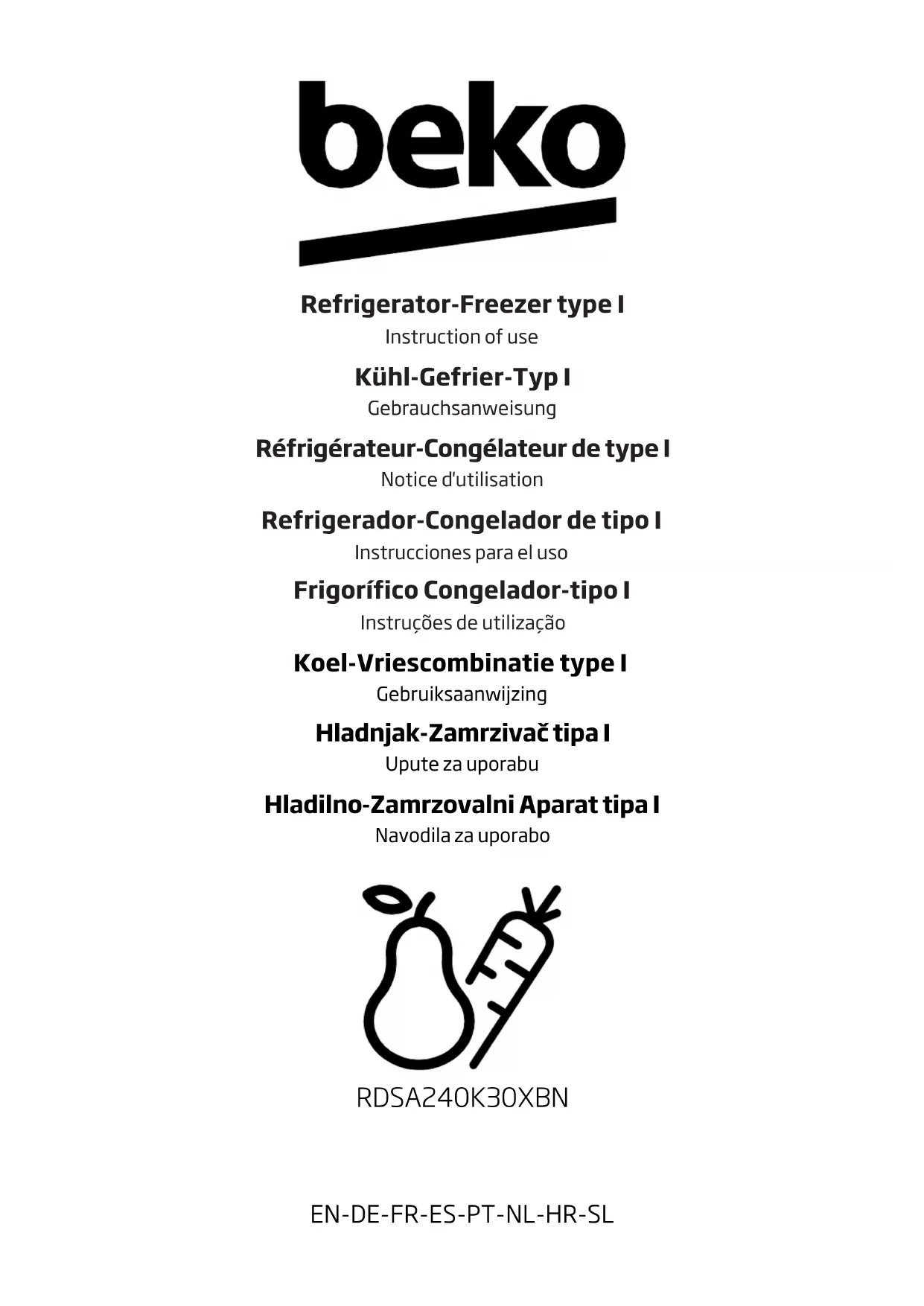 RDSA240K30XBN - Réfrigérateur BEKO - Notice d'utilisation et mode d'emploi gratuit
