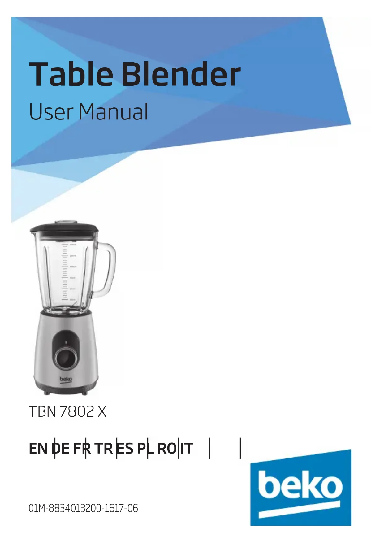 TBN7802X - Blender BEKO - Notice d'utilisation et mode d'emploi gratuit