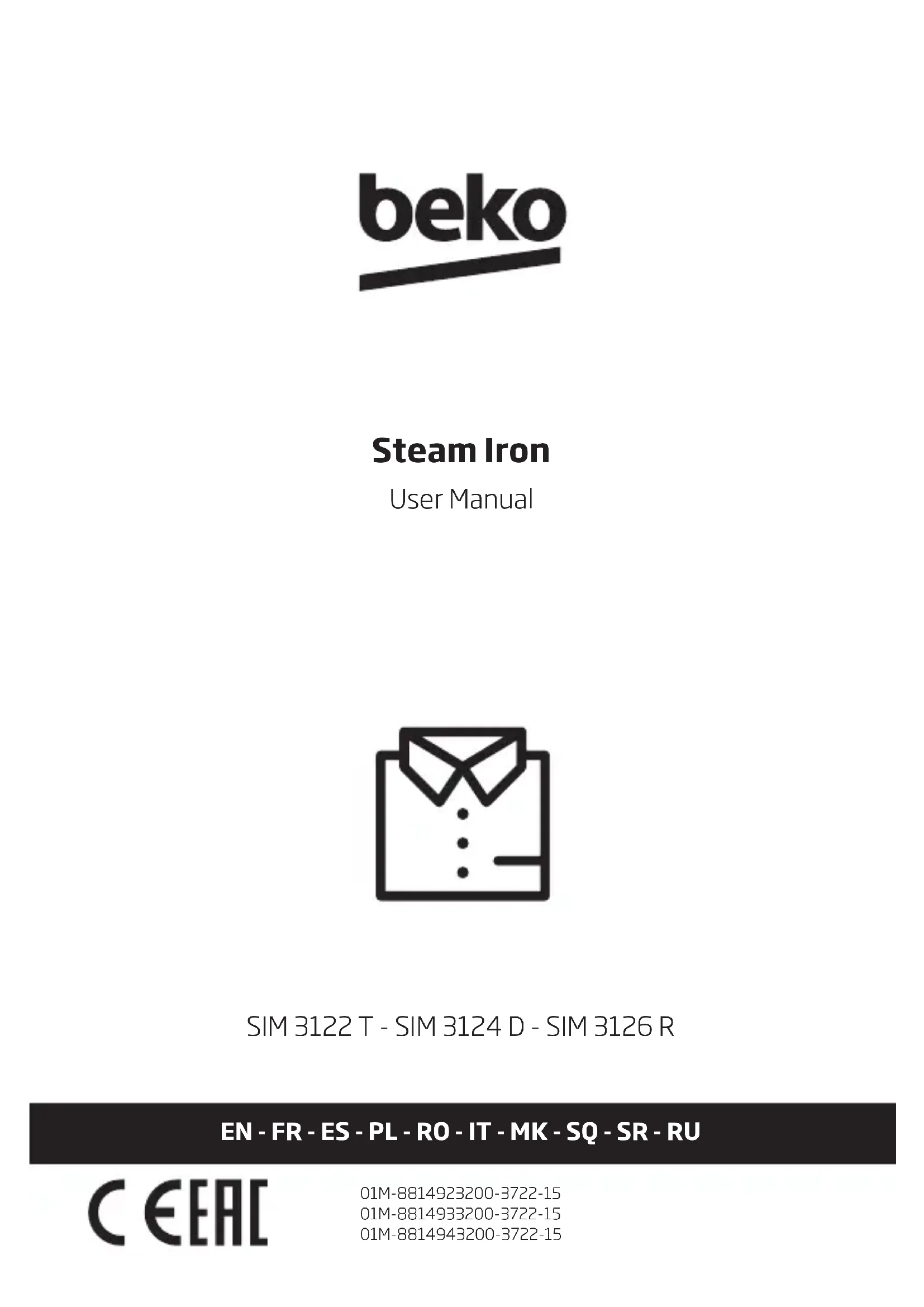 SIM3124D - Fer à repasser BEKO - Notice d'utilisation et mode d'emploi gratuit