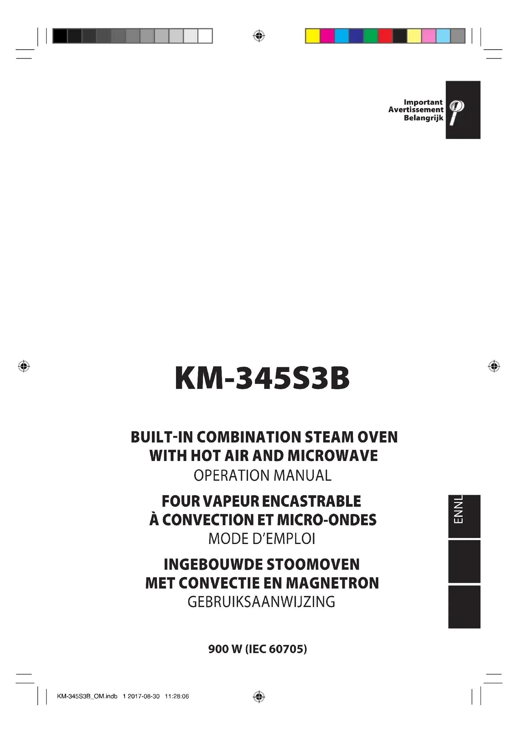 GEBRUIKSAANWIJZING 900 W (IEC 60705) Important Avertissement Belangrijk ENNL FR KM-345S3B_OM.indb 1 2017-08-30 11:28:06KM-345S3B_OM.indb 2 2017-08-30 11:28:06F Ce mode d'emploi du four contient des informations importantes, que vous devez lire avant d'utiliser votre four à micro–ondes.