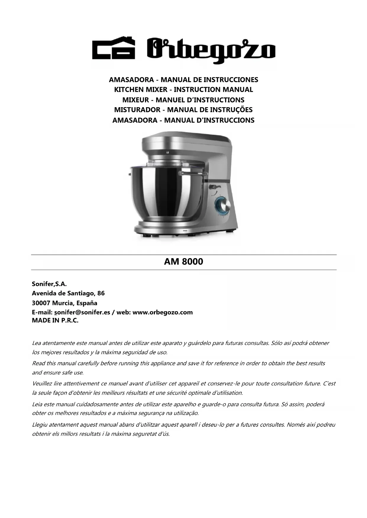Retrouvez gratuitement la notice de l'appareil AM 8000 Orbegozo au format PDF.