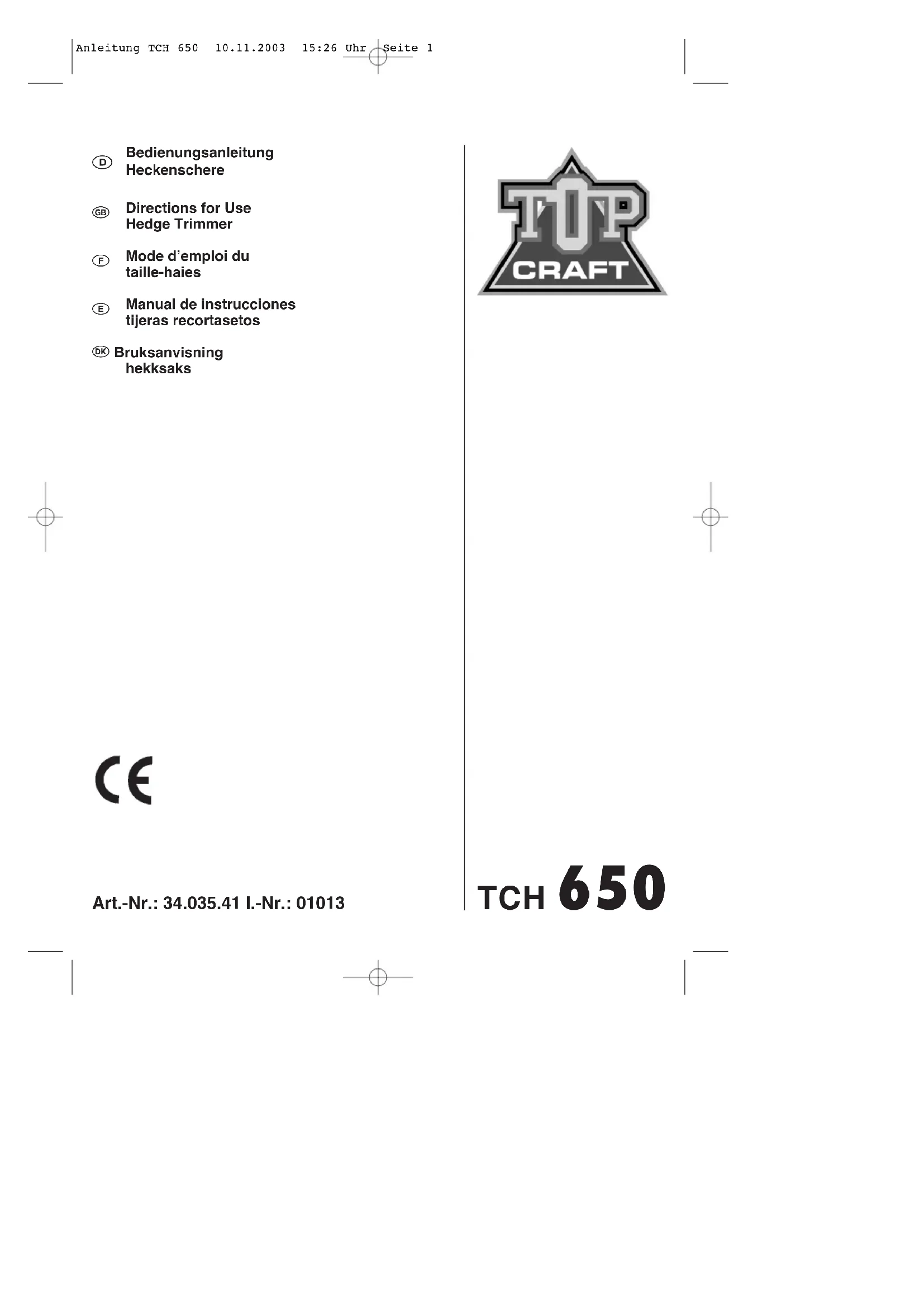 MODE D'EMPLOI TCH 650 Topcraft