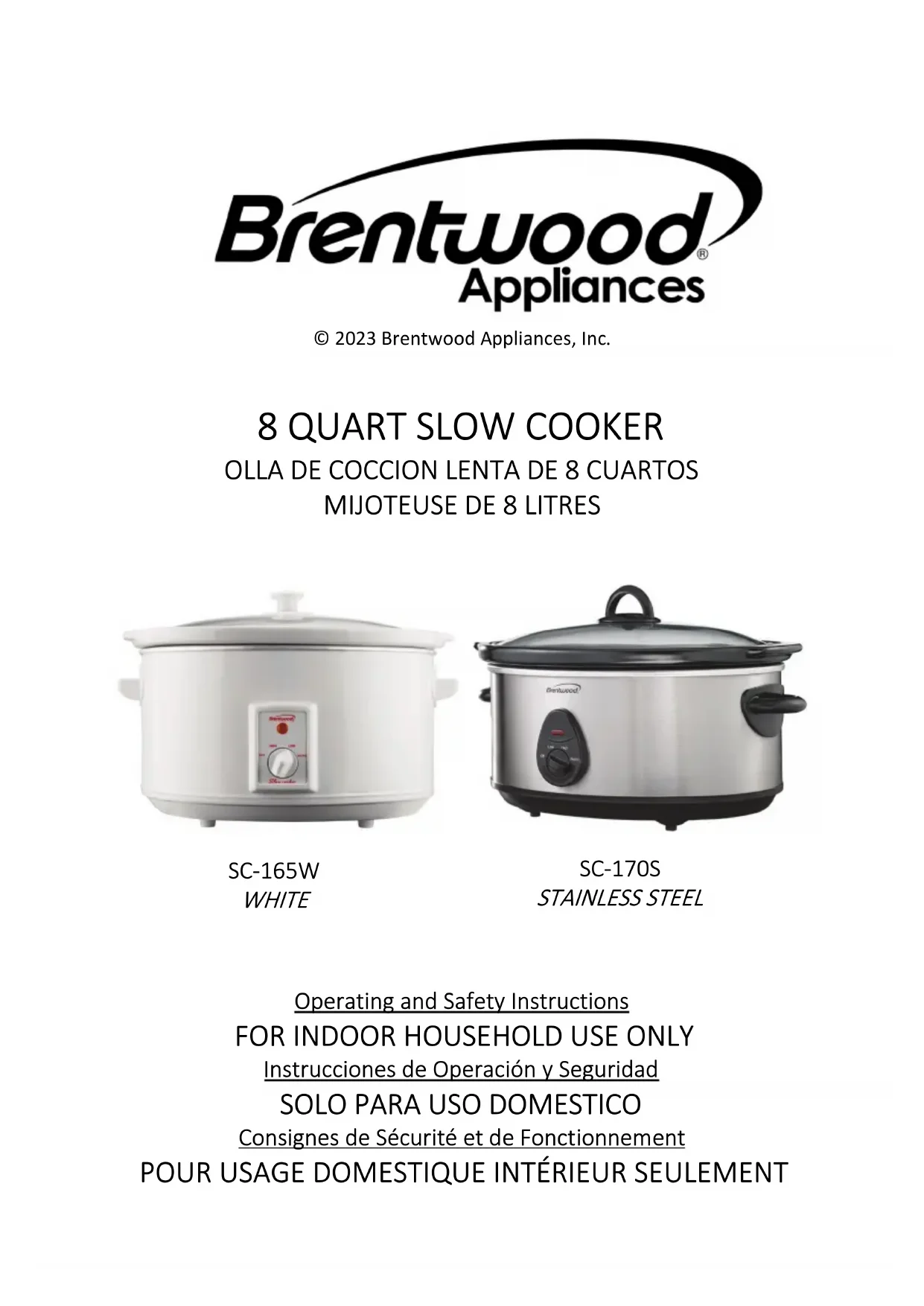 SC-165W - Mijoteuse Brentwood - Notice d'utilisation et mode d'emploi gratuit