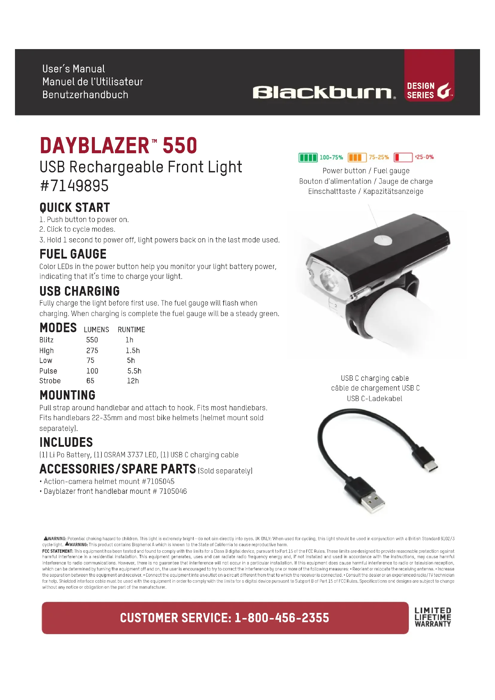 Dayblazer 550 - Éclairage Blackburn - Notice d'utilisation et mode d'emploi gratuit