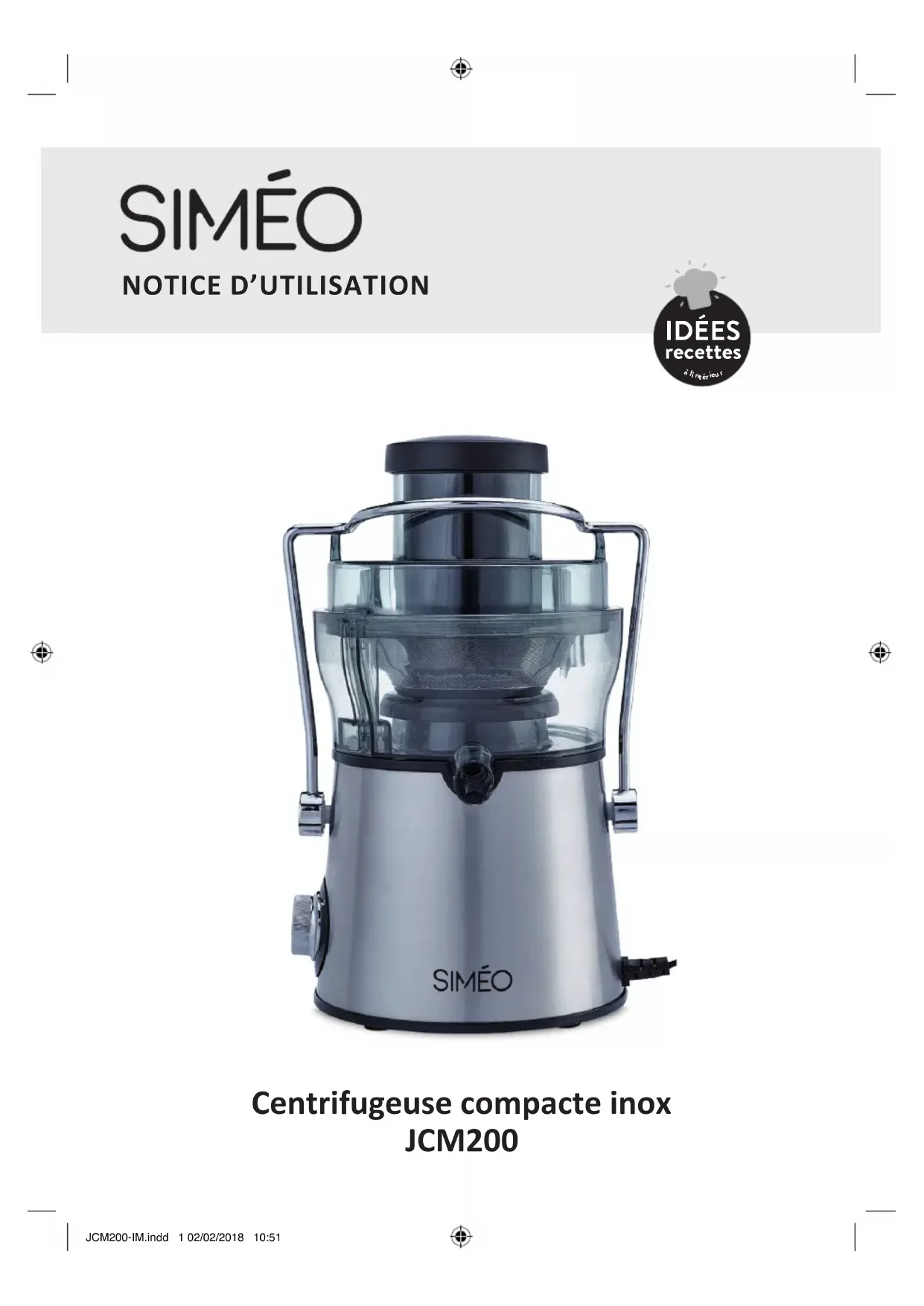 JCM200 - Extracteur de jus SIMEO - Notice d'utilisation et mode d'emploi gratuit