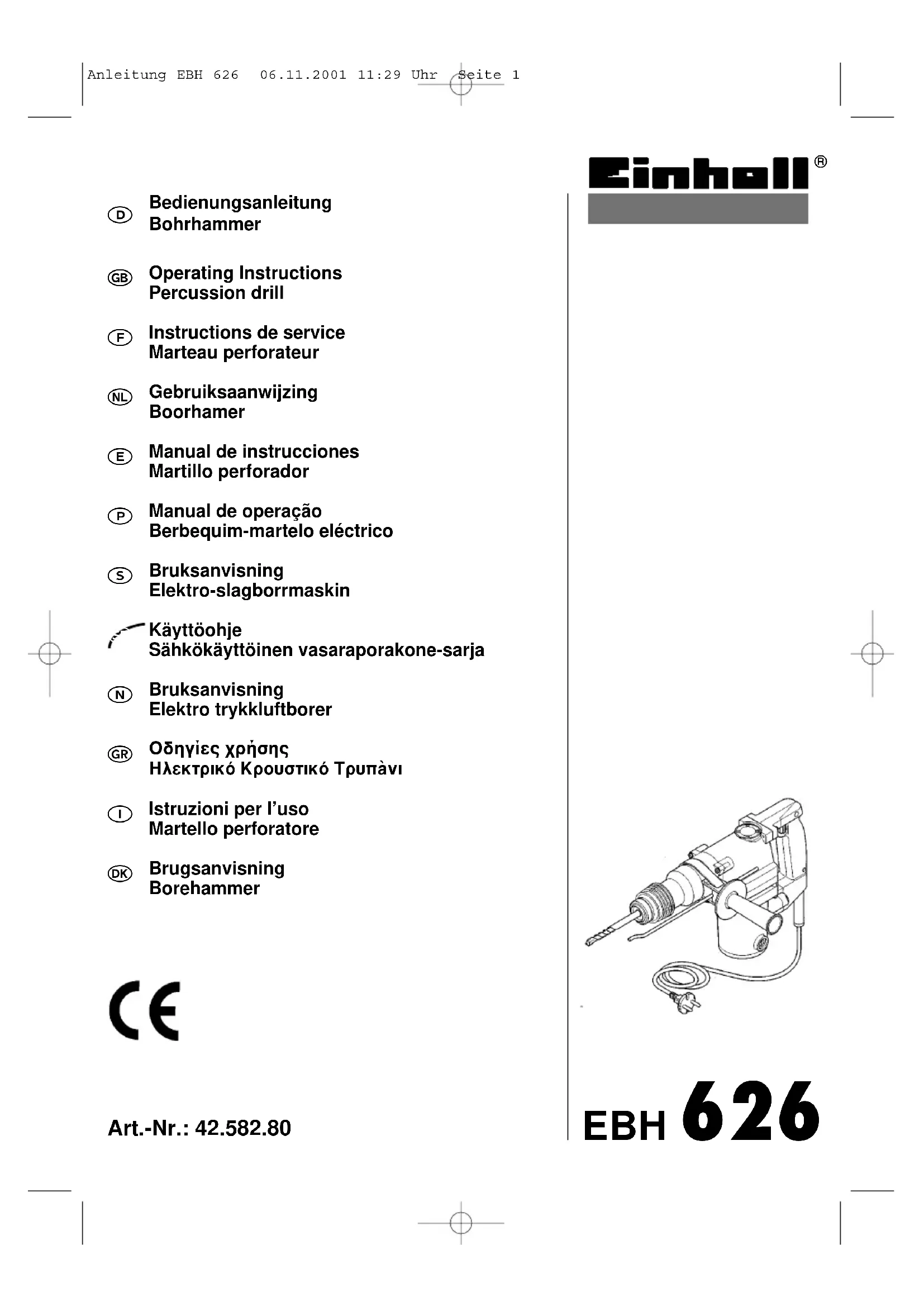 EBH 626 - Marteau EINHELL - Notice d'utilisation et mode d'emploi gratuit