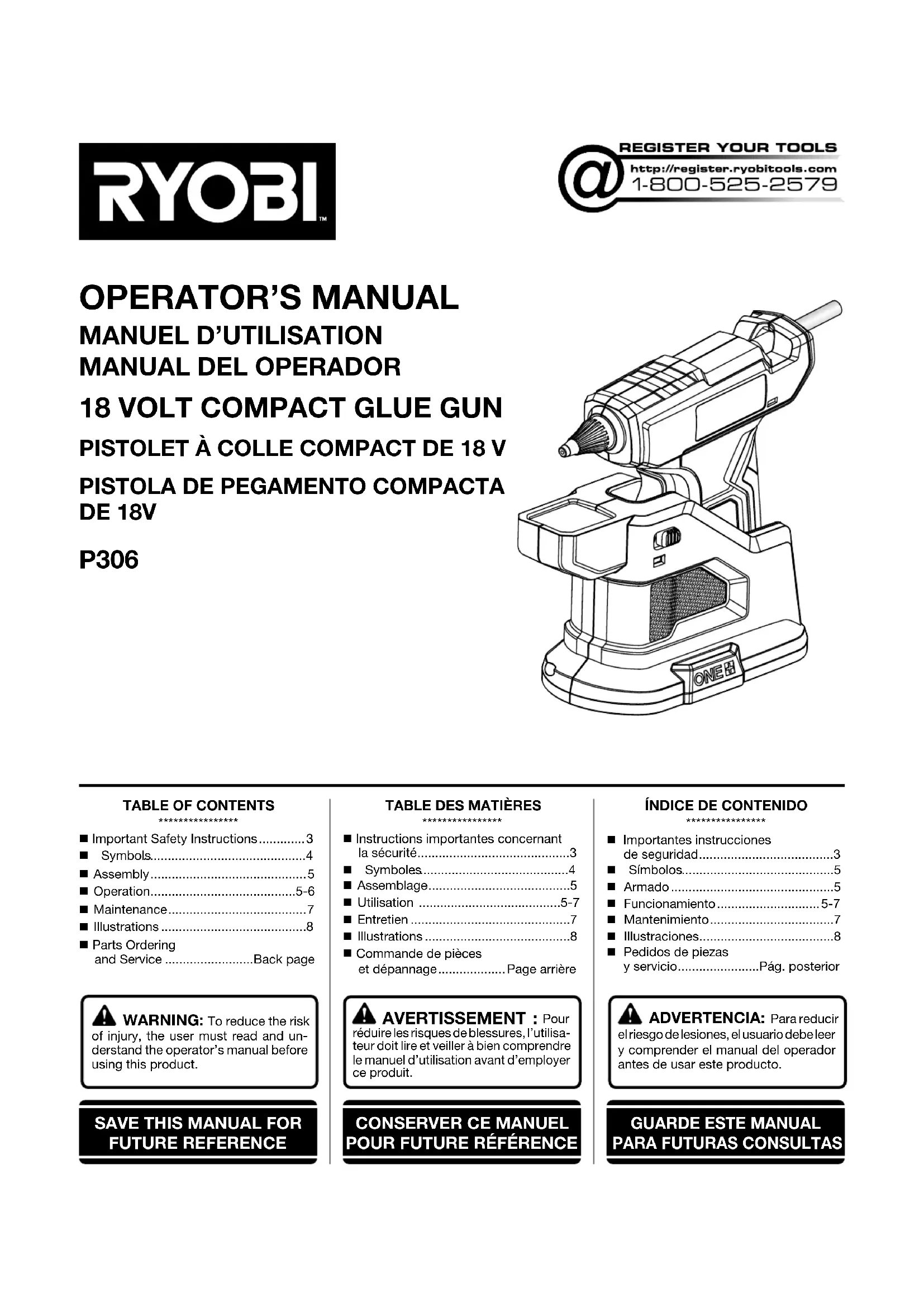 P306 - Pistolet à colle RYOBI - Notice d'utilisation et mode d'emploi gratuit