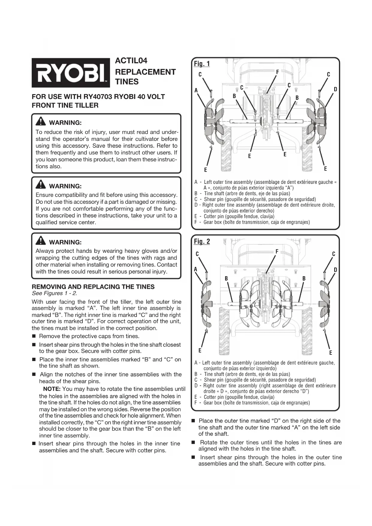 Retrouvez gratuitement la notice de l'appareil ACTIL04 RYOBI au format PDF.