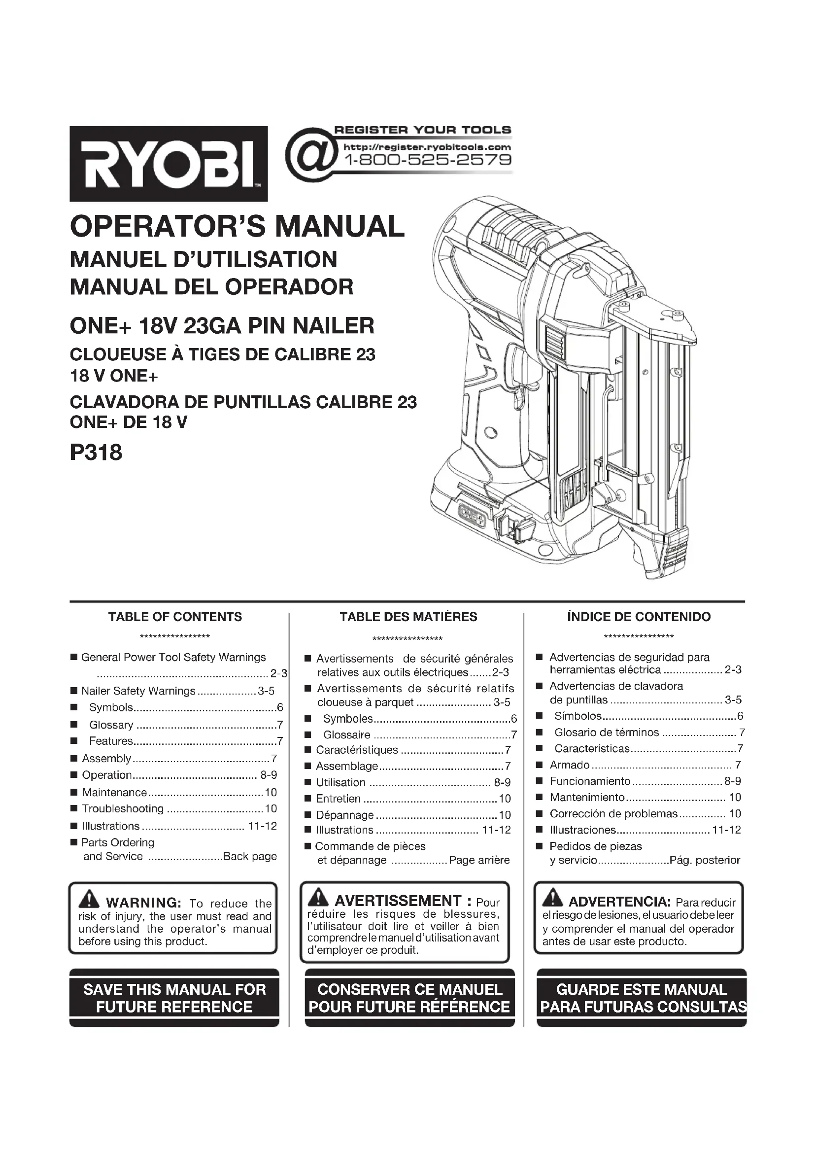 Retrouvez gratuitement la notice de l'appareil P318 RYOBI au format PDF.