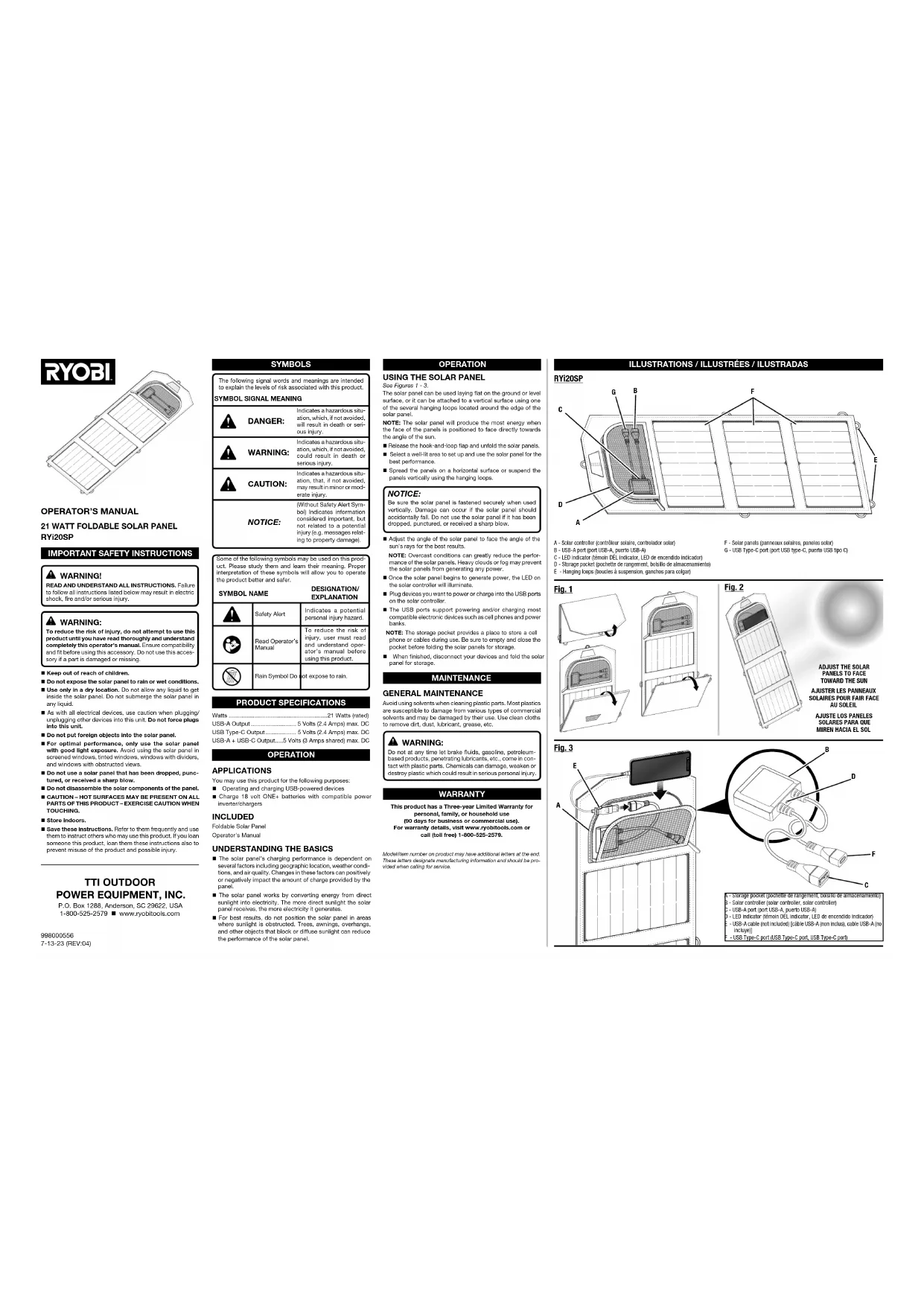 Retrouvez gratuitement la notice de l'appareil RYi20SP RYOBI au format PDF.